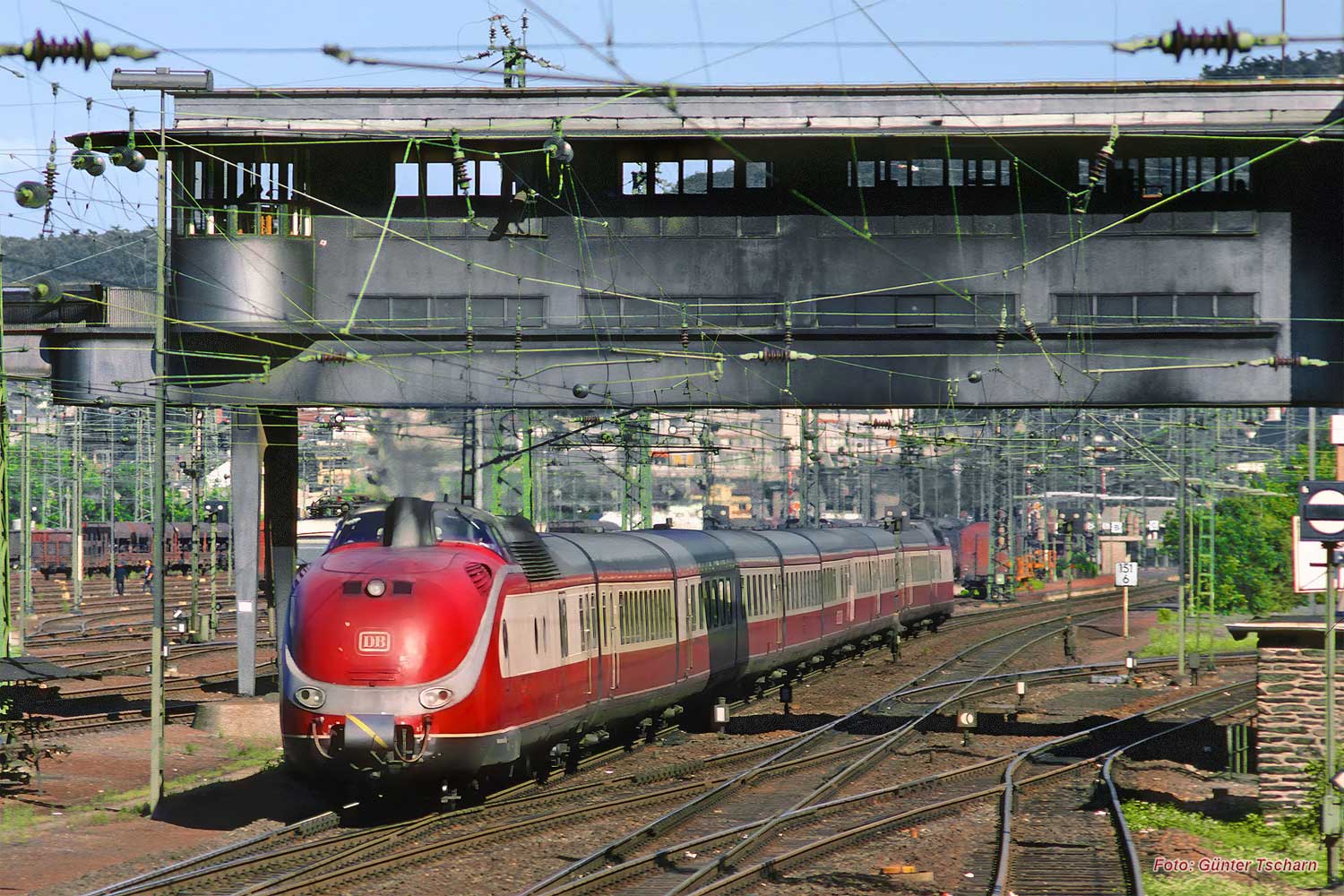601004 mit Dt 13420 (Bodenmais - Dortmund) unter dem Brückenstellwerk Bkb