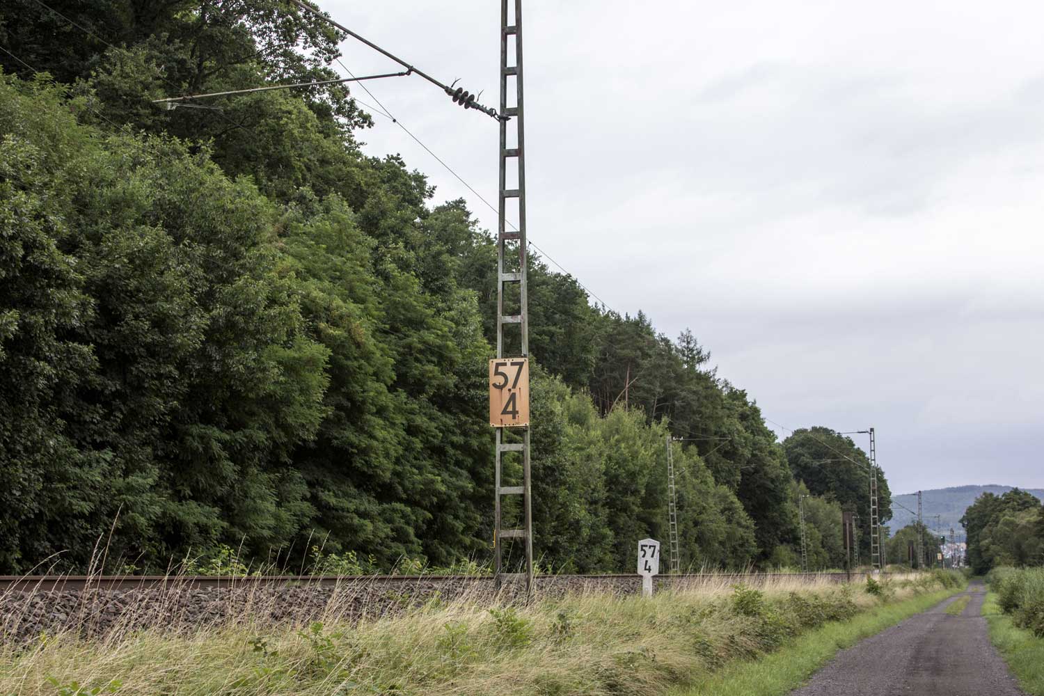 km 50,6 (Tafel) und km 50,7 (Stein) zwischen Wirtheim und Wächtersbach - Blick Richtung Frankfurt (Main)