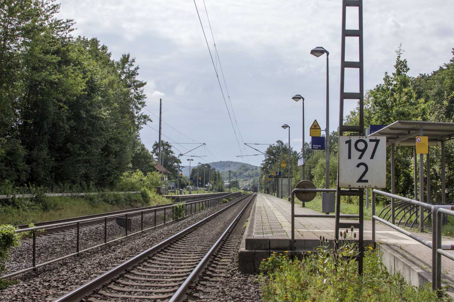 | Wolfgang (Kr. Hanau) | 25,29 | km 0,77 der Strecke Abzw. Rauschwald -0,40 - Wolfgang (Kr Hanau) 0,77 |