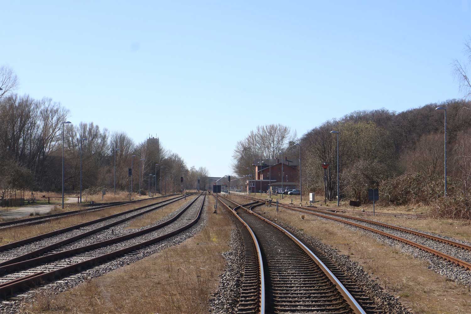 km 210,5 in Wolgast Hafen - Blick Richtung Züssow