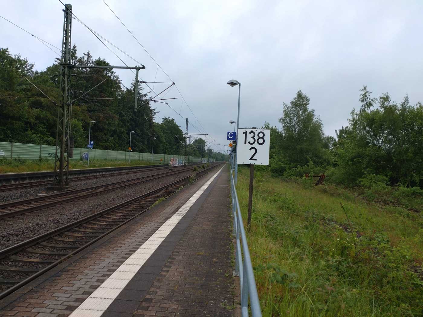 km 138,6 entspricht der Kilometrierung ab 1981 für die Strecke (Hamburg-Altona 0,74) - Elmshorn 30,70 - Wrist 52,23 - Neumünster 74,69 (kommend)/74,64 (gehend) - Flensburg Weiche 172,92 - Staatsgrenze 179,784 - (Padborg).