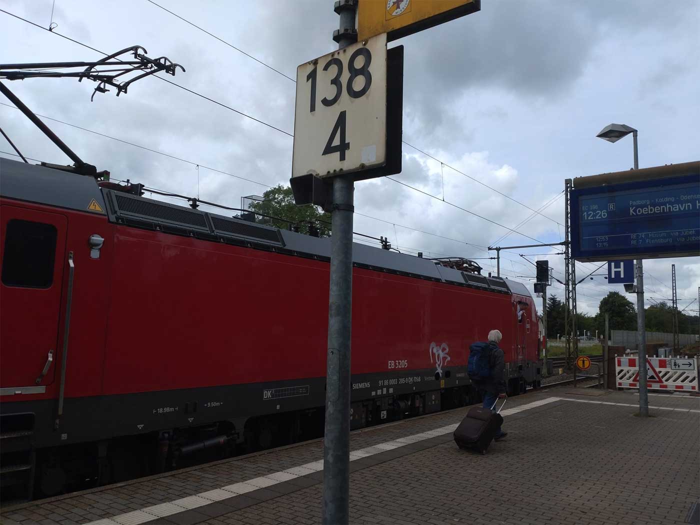 (Hamburg-Altona 0,74) - Elmshorn 30,70 - Wrist 52,23 - Neumünster 74,69 (kommend)/74,64 (gehend) - Schleswig 138,39 - Flensburg Abzw Weiche 171,15 - Abzw Friedensweg 174,57 - Grenze Deutschland/Dänemark 179,784 = (km 110,650 - Padborg 109,7 - Tinglev 95,3 - Fredericia 0,0)