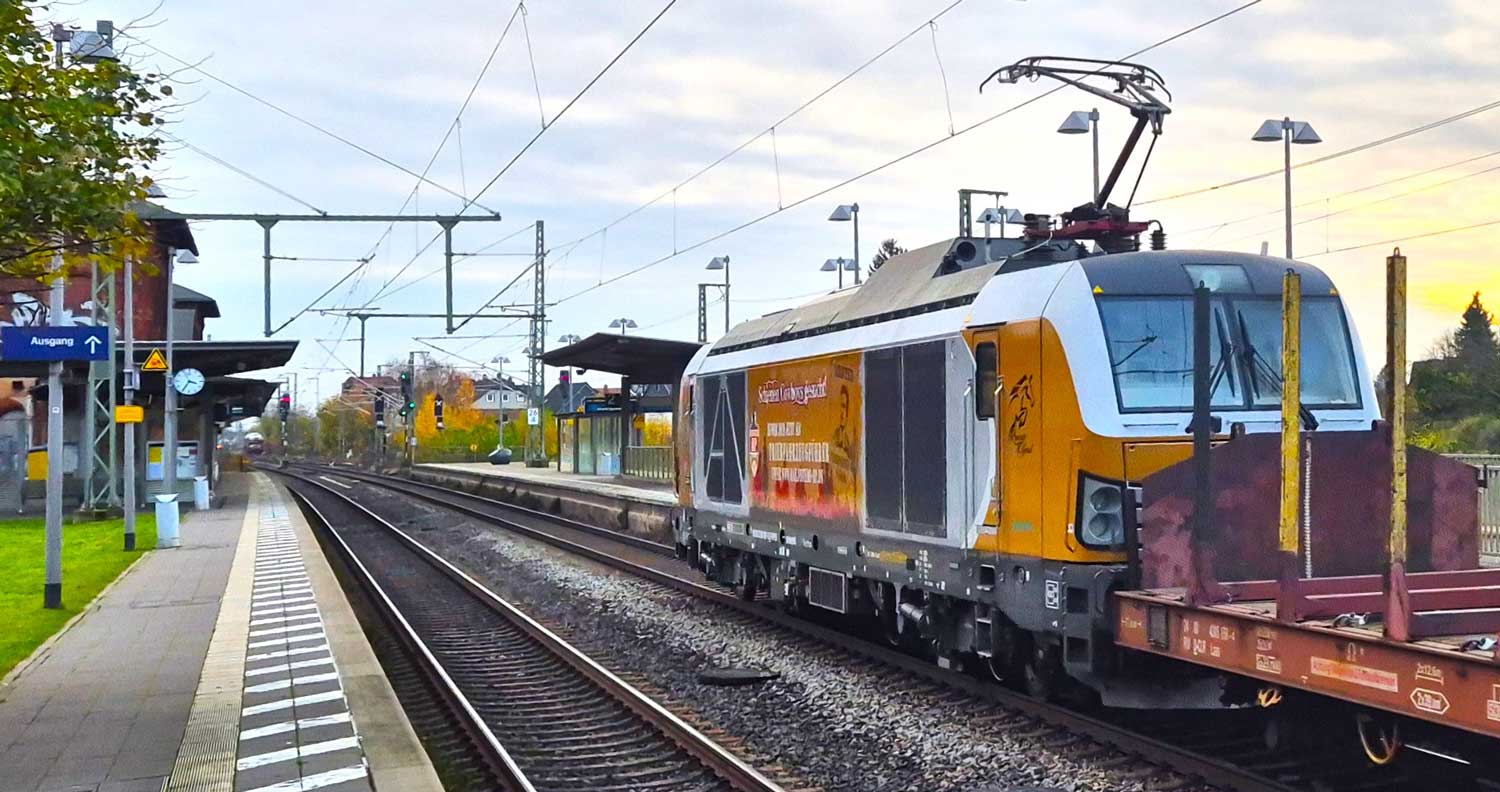 km 1,2 (rechts am Oberleitungsmast) gehört zur Strecke