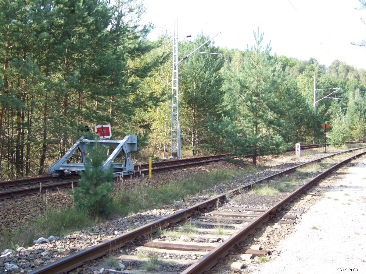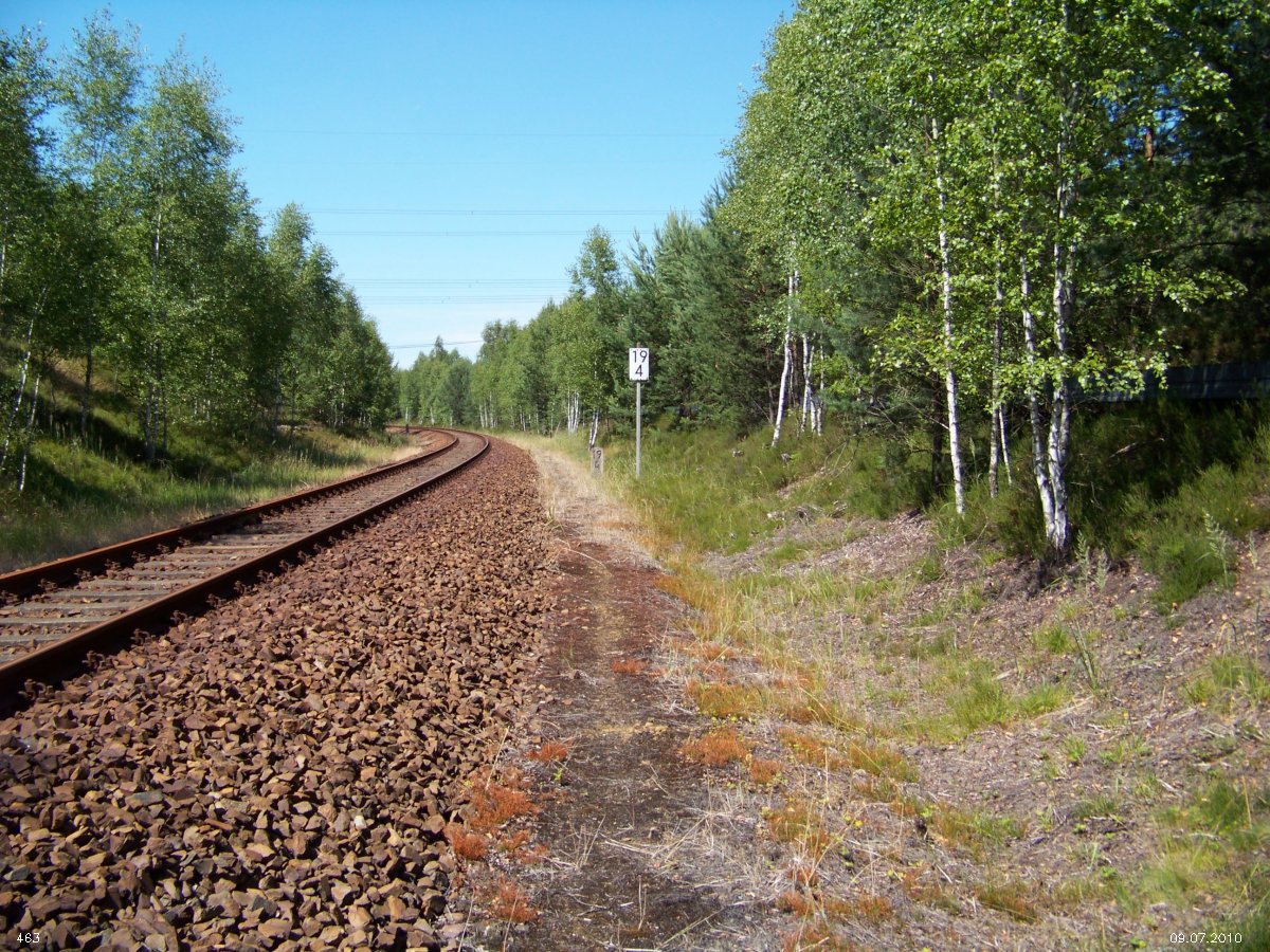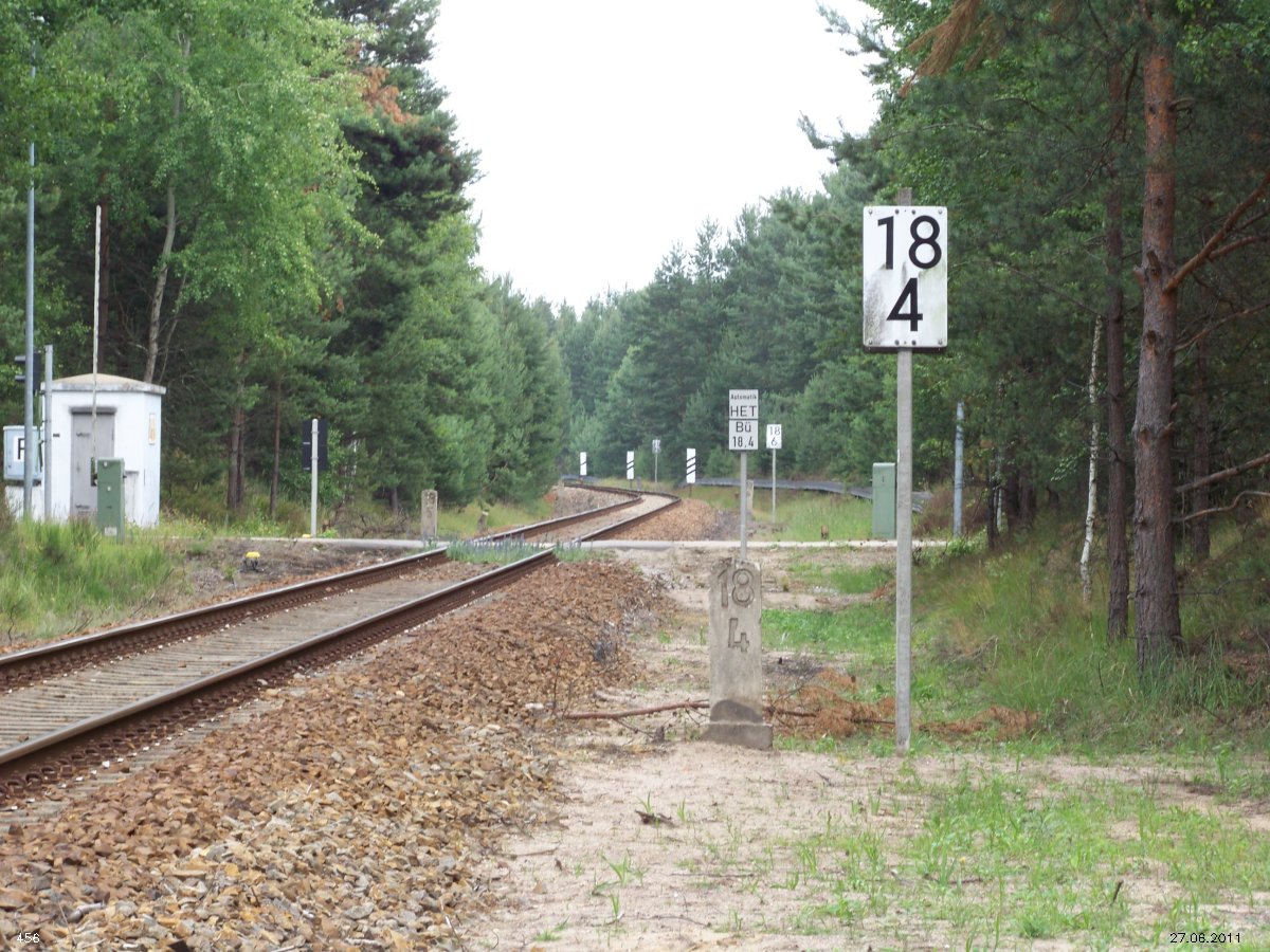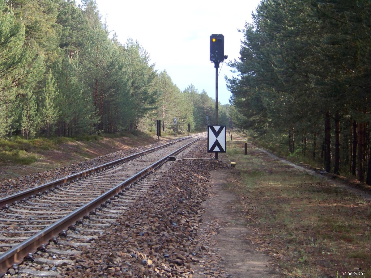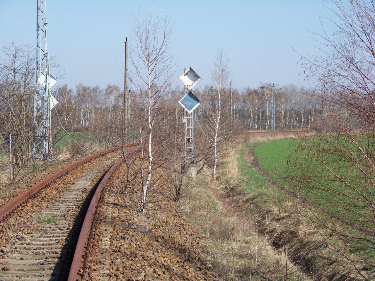 | km 53,00 der Strecke Großenhain Cottb. Bf 0,0 - Senftenberg 45,29 - Cottbus 80,00 - Peitz 94,81 - Streckenunterbrechung - Grunow (Niederlausitz) 129,27 - Frankfurt (Oder) 152,78 |