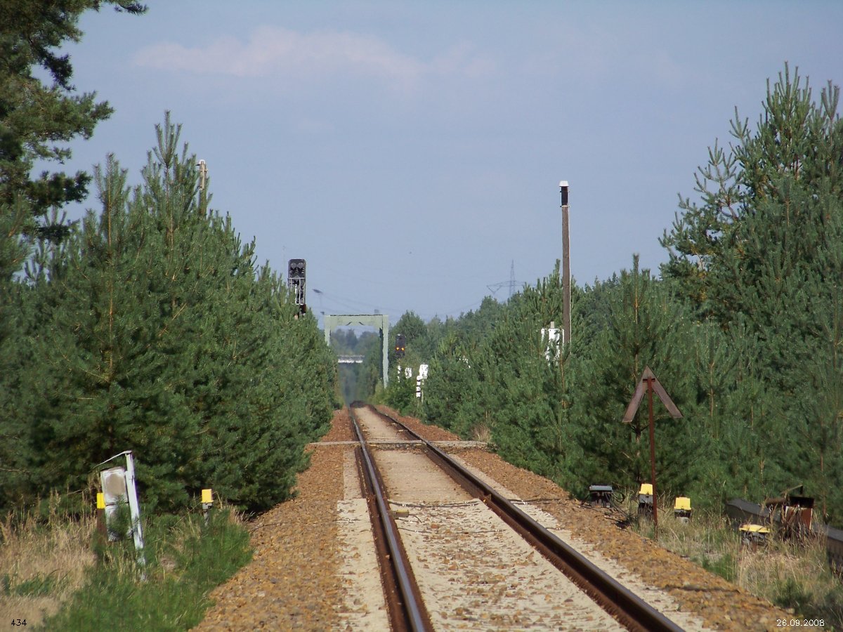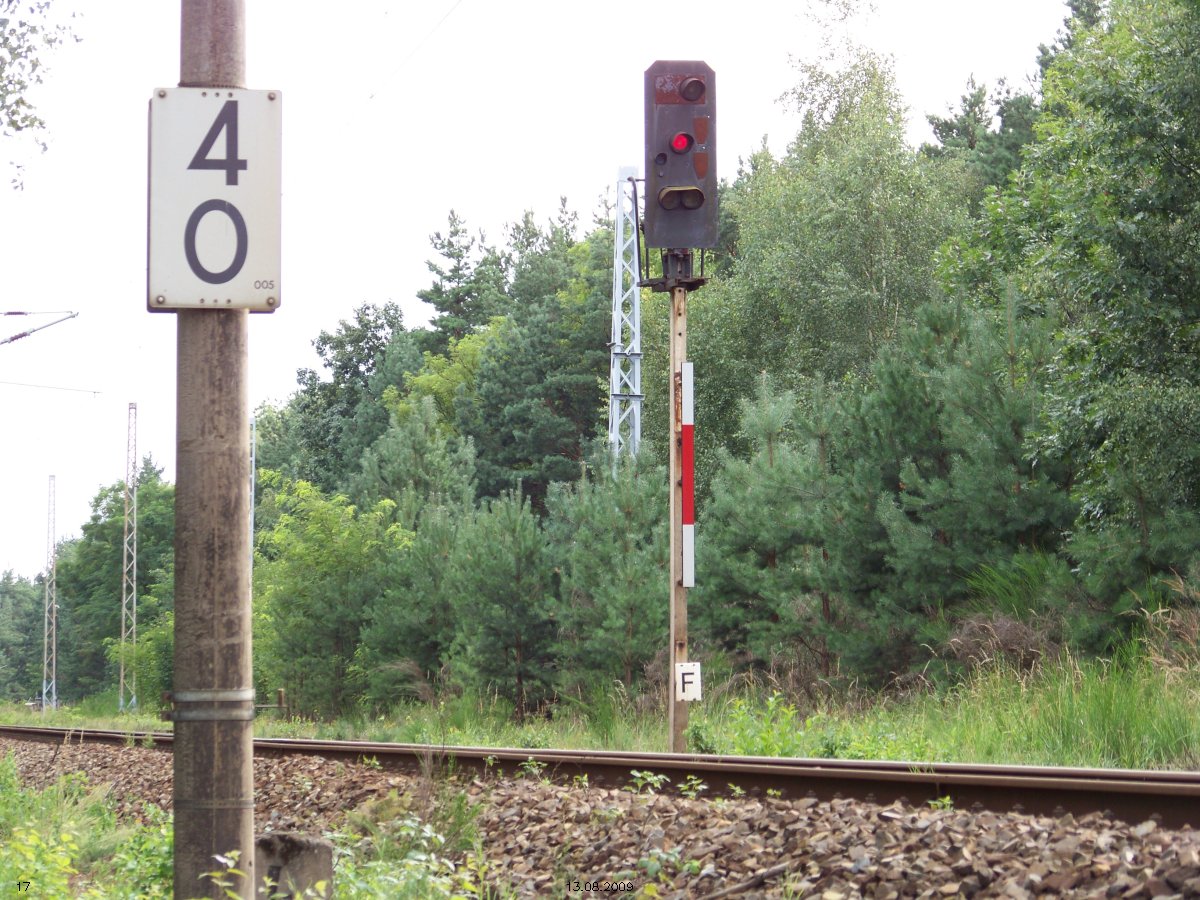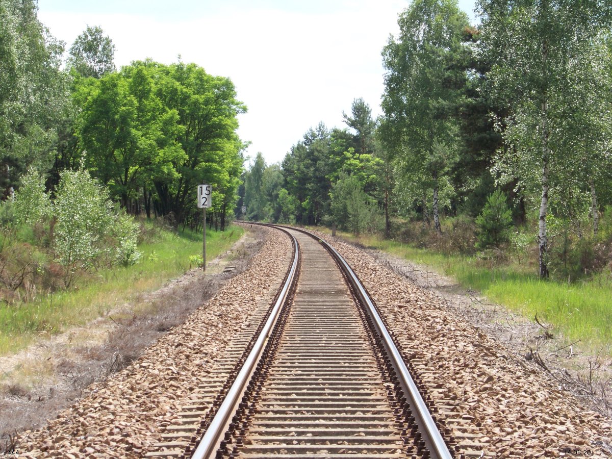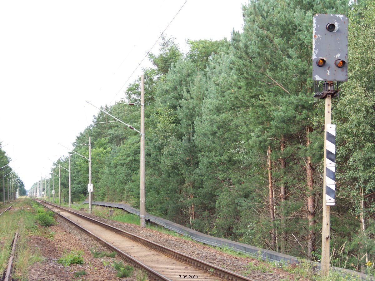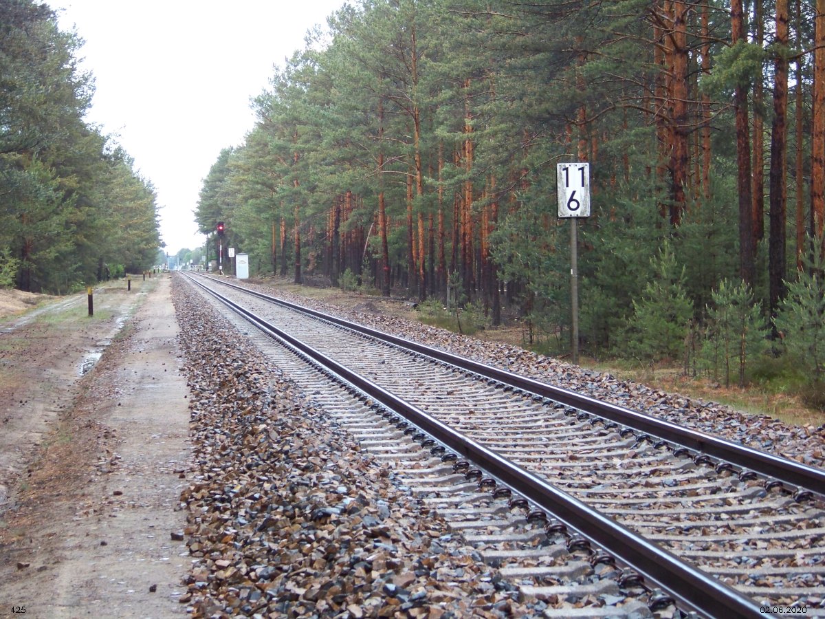 | km 53,00 der Strecke Großenhain Cottb. Bf 0,0 - Senftenberg 45,29 - Cottbus 80,00 - Peitz 94,81 - Streckenunterbrechung - Grunow (Niederlausitz) 129,27 - Frankfurt (Oder) 152,78 |
