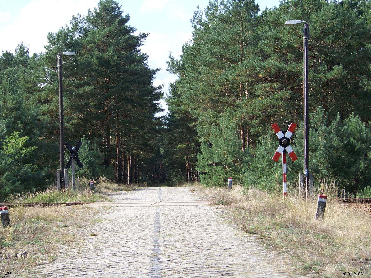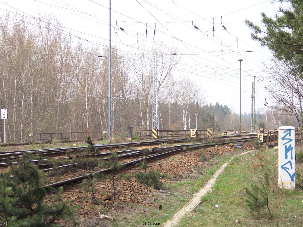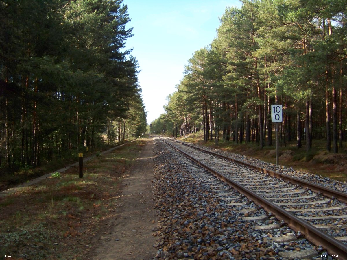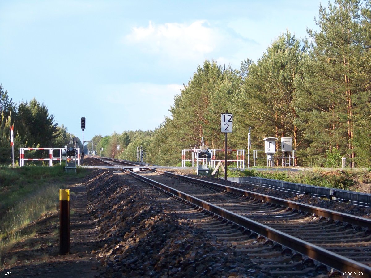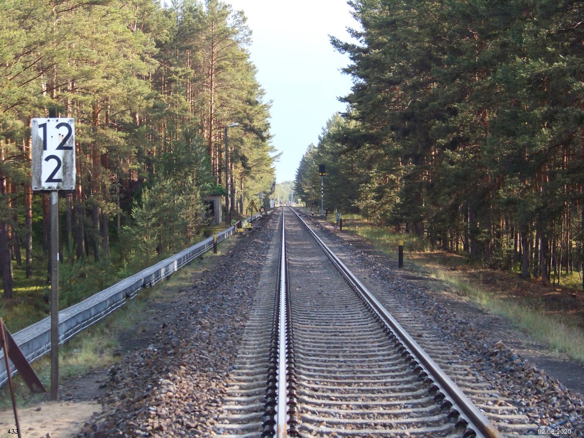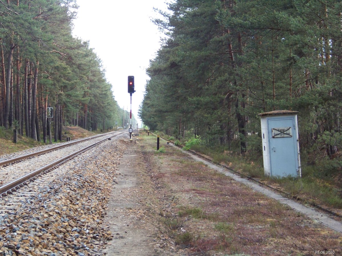 | km 53,00 der Strecke Großenhain Cottb. Bf 0,0 - Senftenberg 45,29 - Cottbus 80,00 - Peitz 94,81 - Streckenunterbrechung - Grunow (Niederlausitz) 129,27 - Frankfurt (Oder) 152,78 |