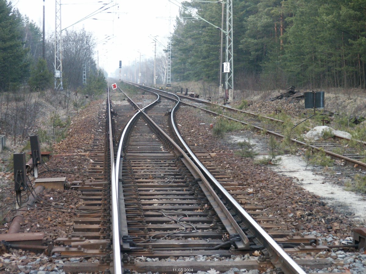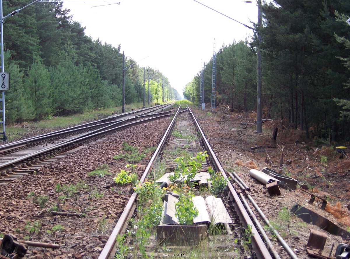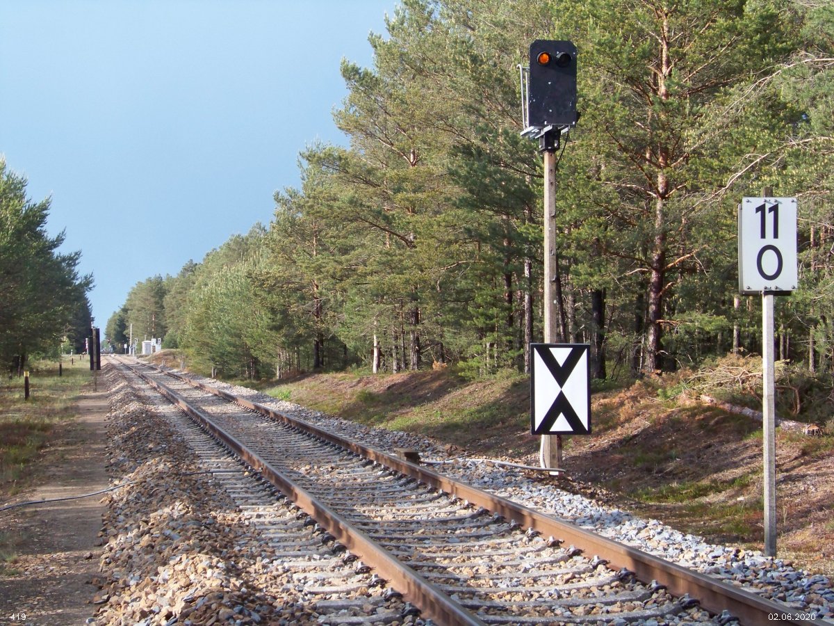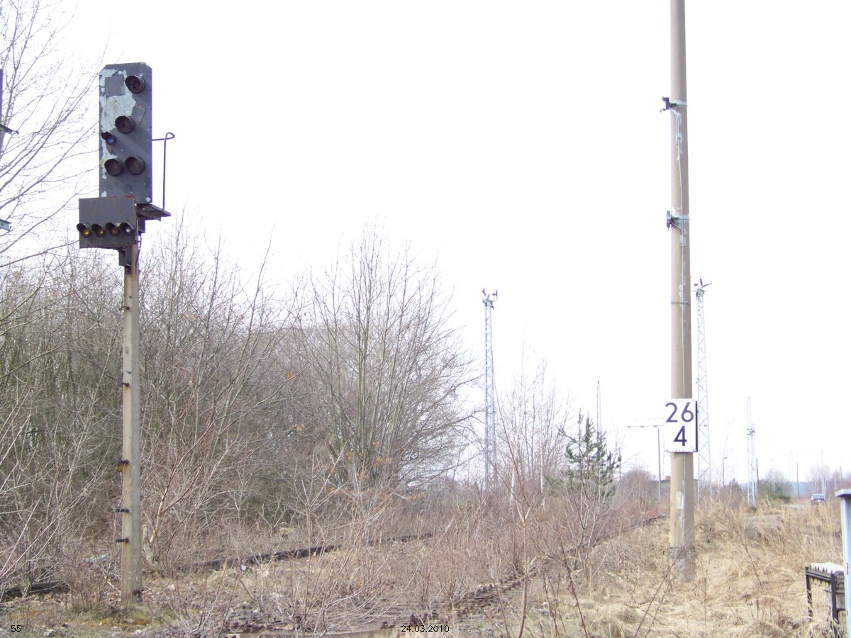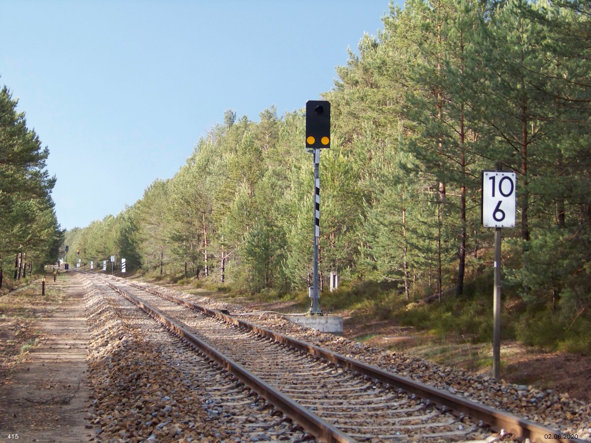 | km 53,00 der Strecke Großenhain Cottb. Bf 0,0 - Senftenberg 45,29 - Cottbus 80,00 - Peitz 94,81 - Streckenunterbrechung - Grunow (Niederlausitz) 129,27 - Frankfurt (Oder) 152,78 |