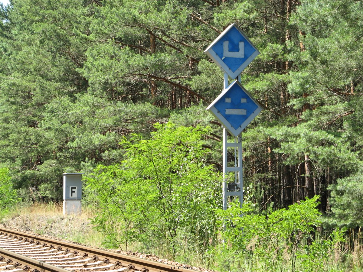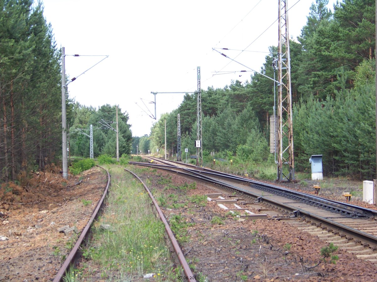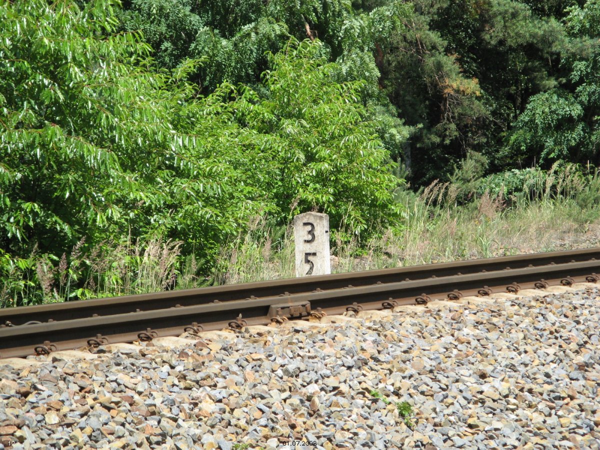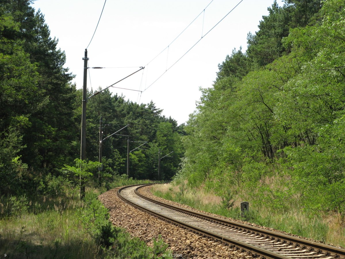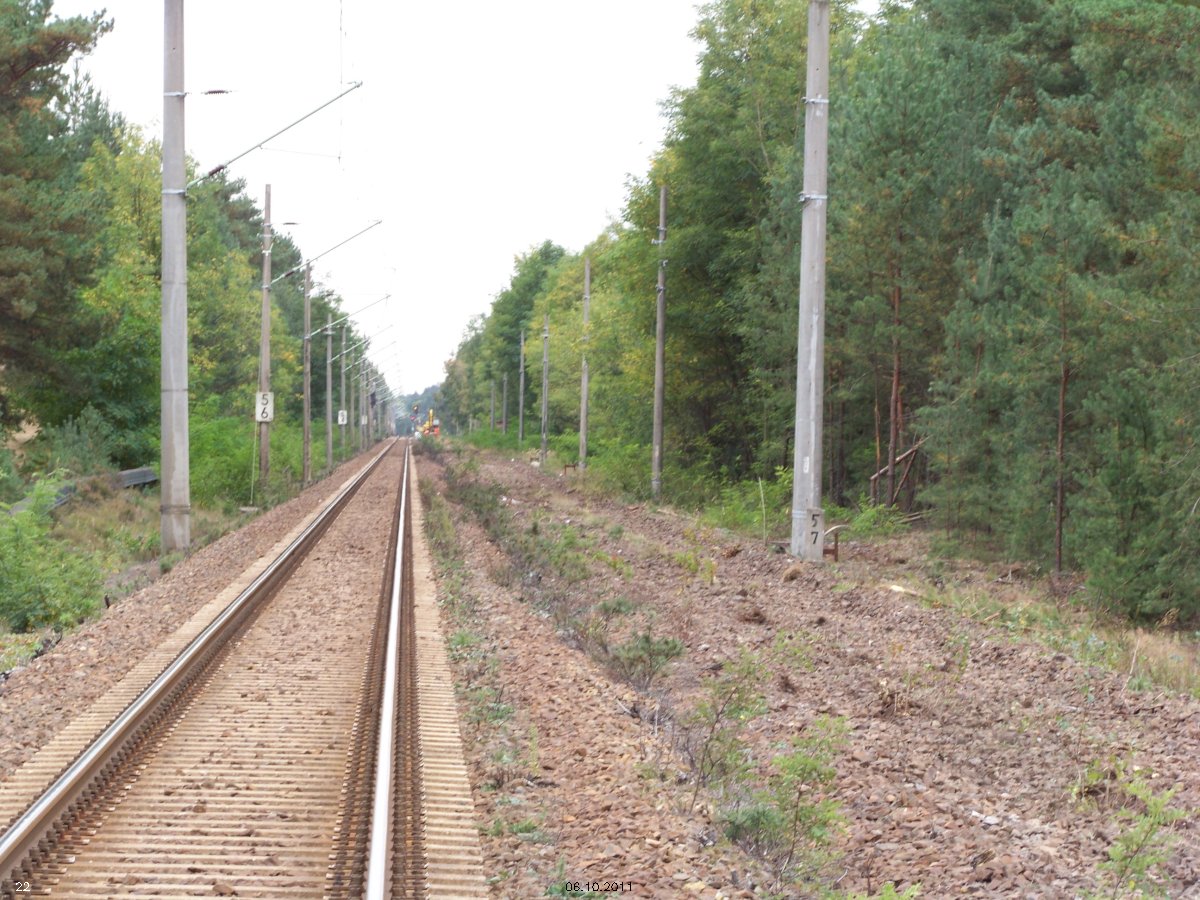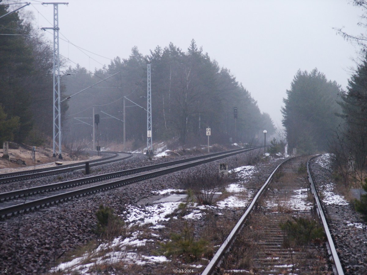 | km 53,00 der Strecke Großenhain Cottb. Bf 0,0 - Senftenberg 45,29 - Cottbus 80,00 - Peitz 94,81 - Streckenunterbrechung - Grunow (Niederlausitz) 129,27 - Frankfurt (Oder) 152,78 |
