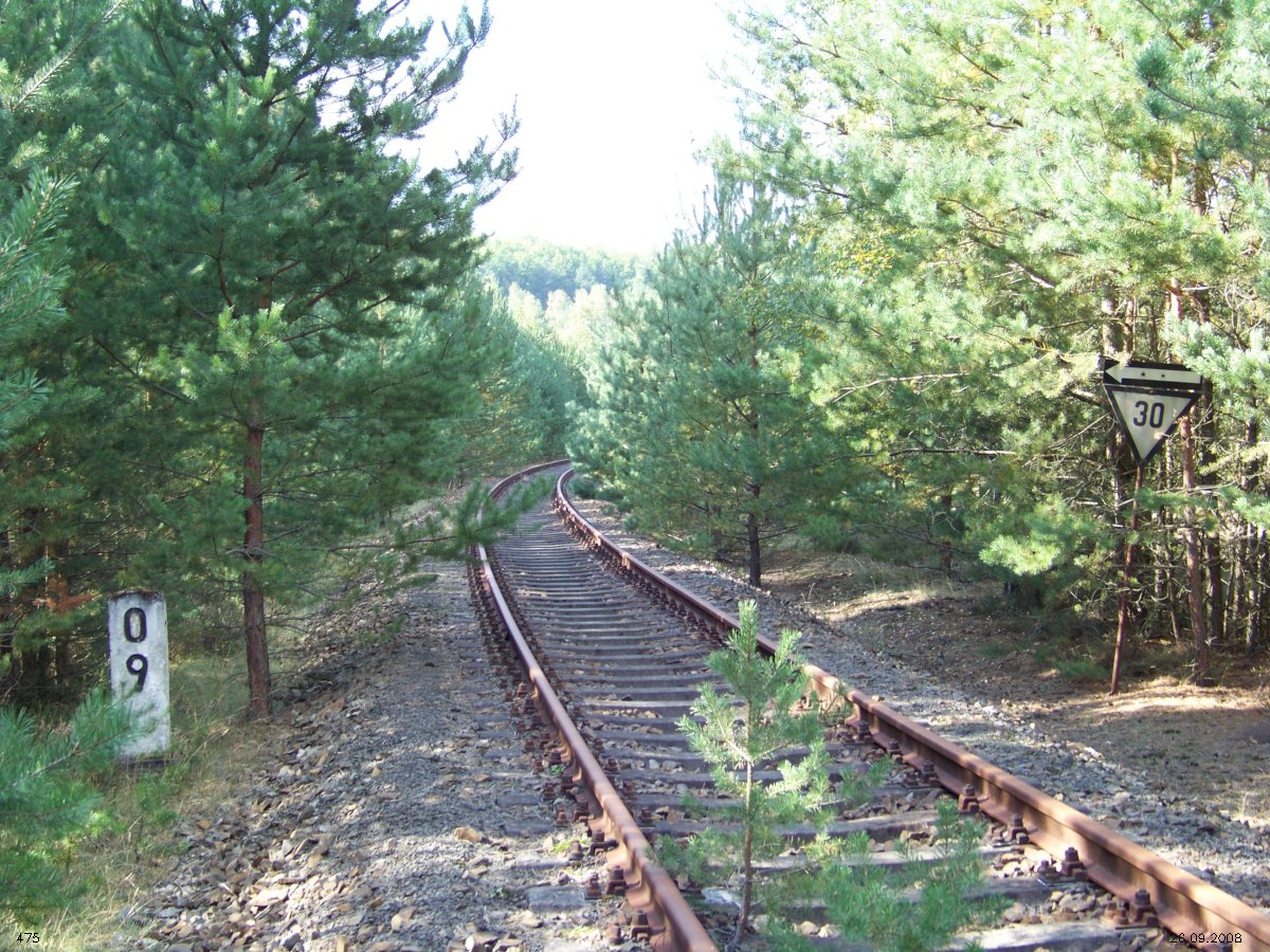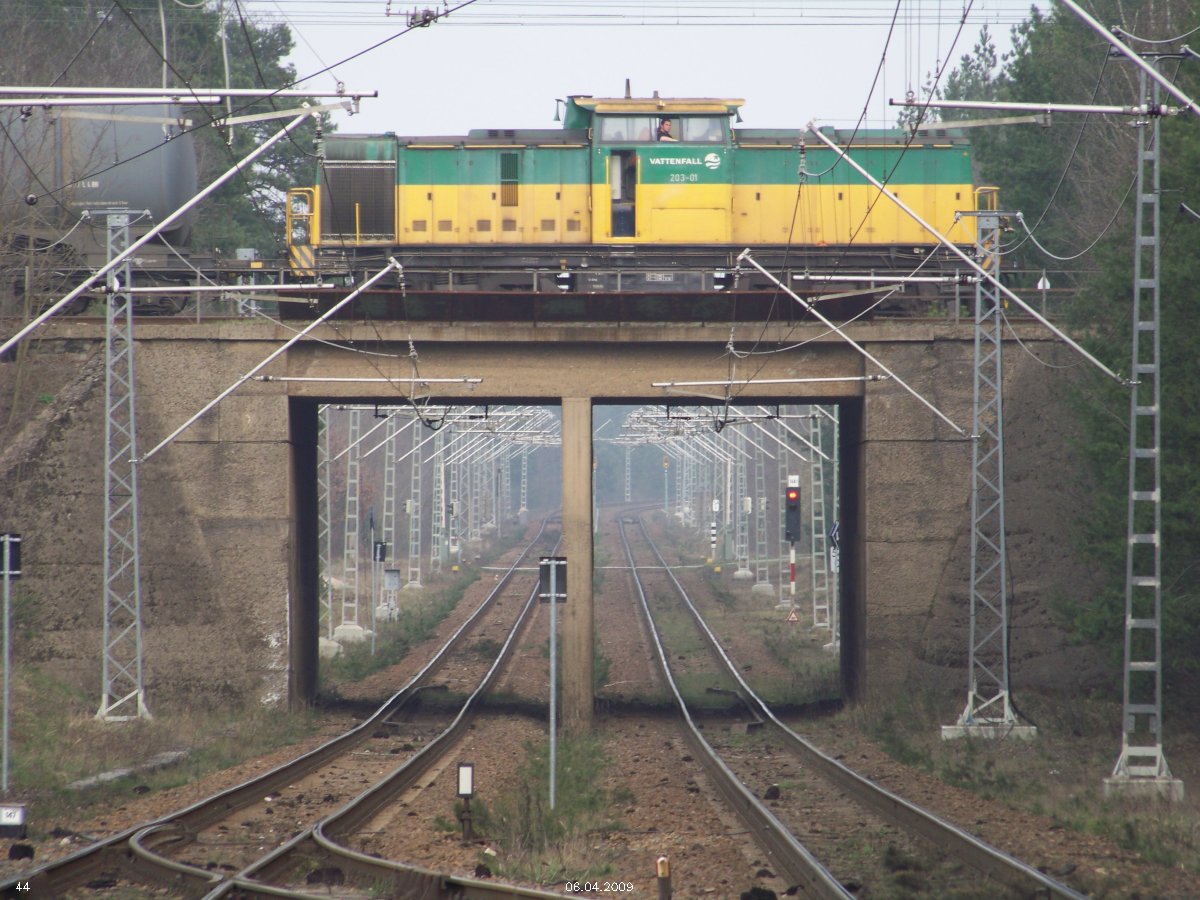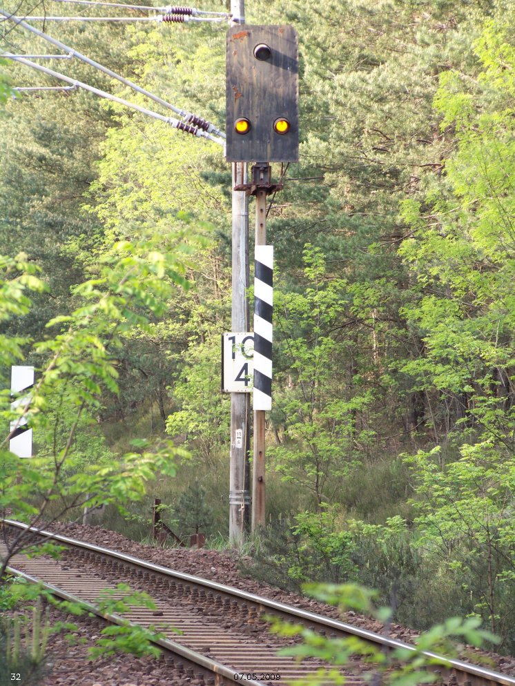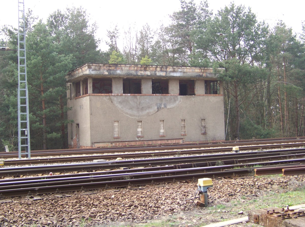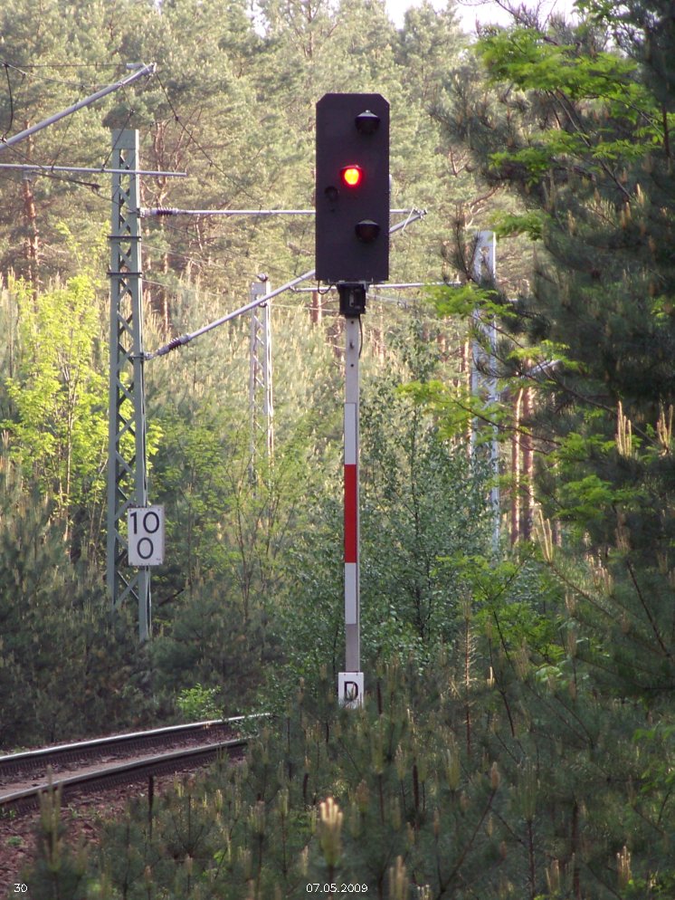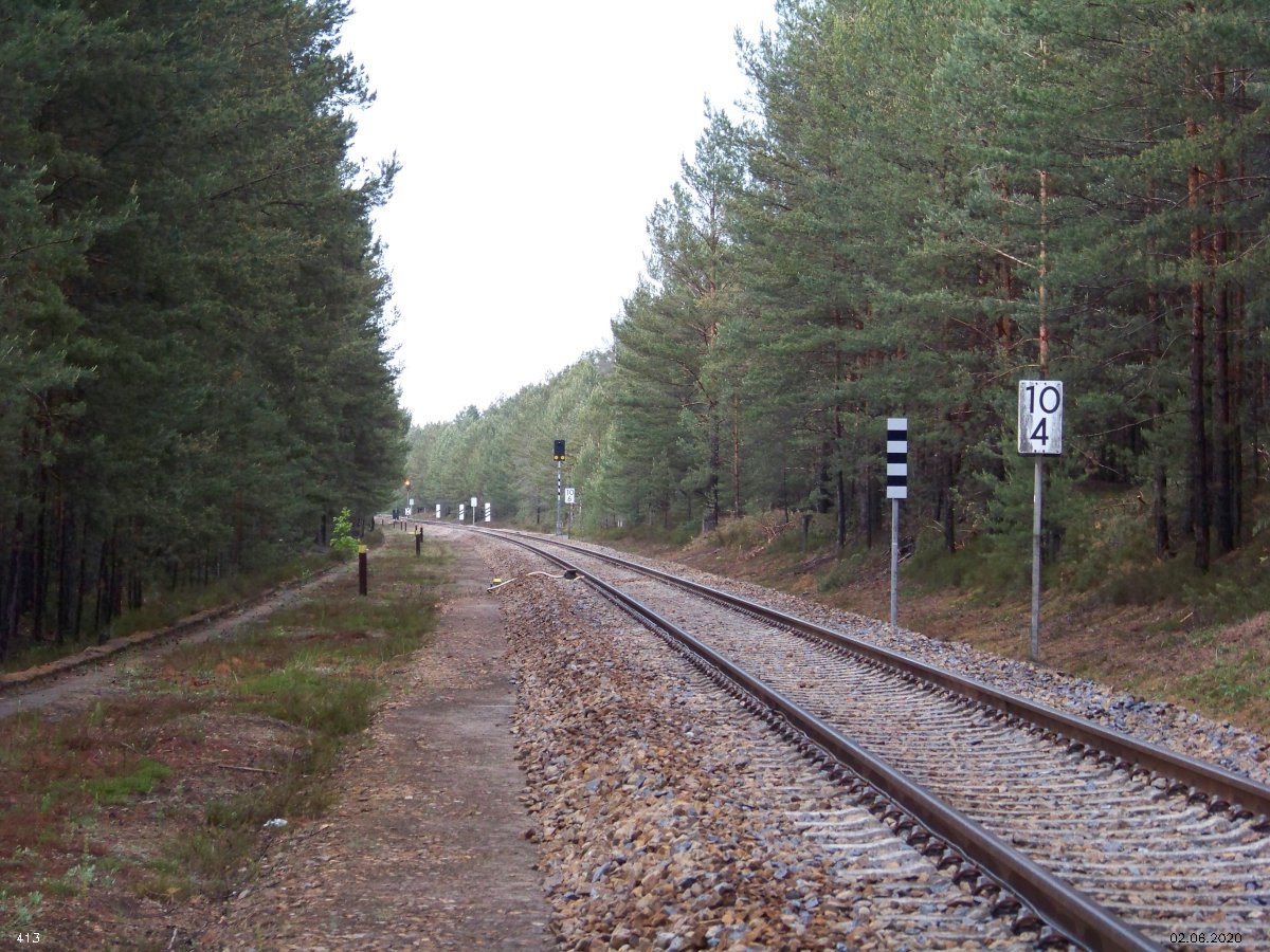 | km 53,00 der Strecke Großenhain Cottb. Bf 0,0 - Senftenberg 45,29 - Cottbus 80,00 - Peitz 94,81 - Streckenunterbrechung - Grunow (Niederlausitz) 129,27 - Frankfurt (Oder) 152,78 |