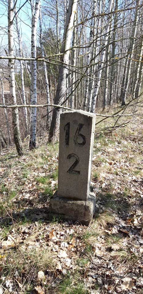 km 20,0 (Tafel) und km 20,2 (Stein und Tafel) in Graustein - Blick Richtung Abzw Spreewitz Süd - Knappenrode