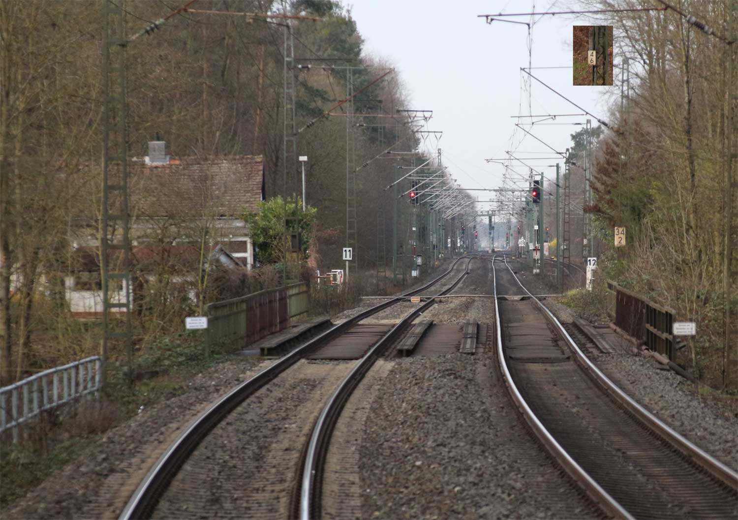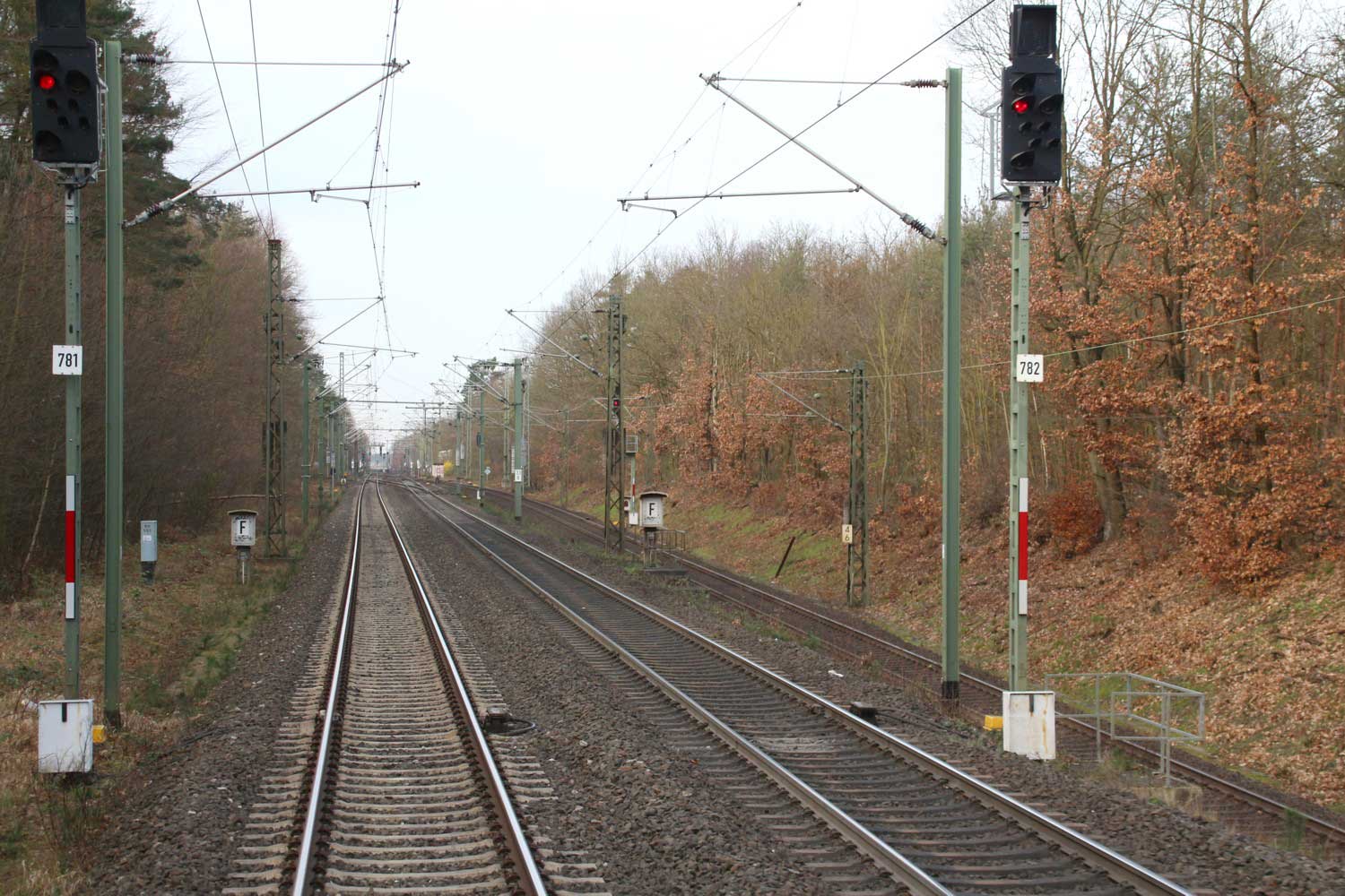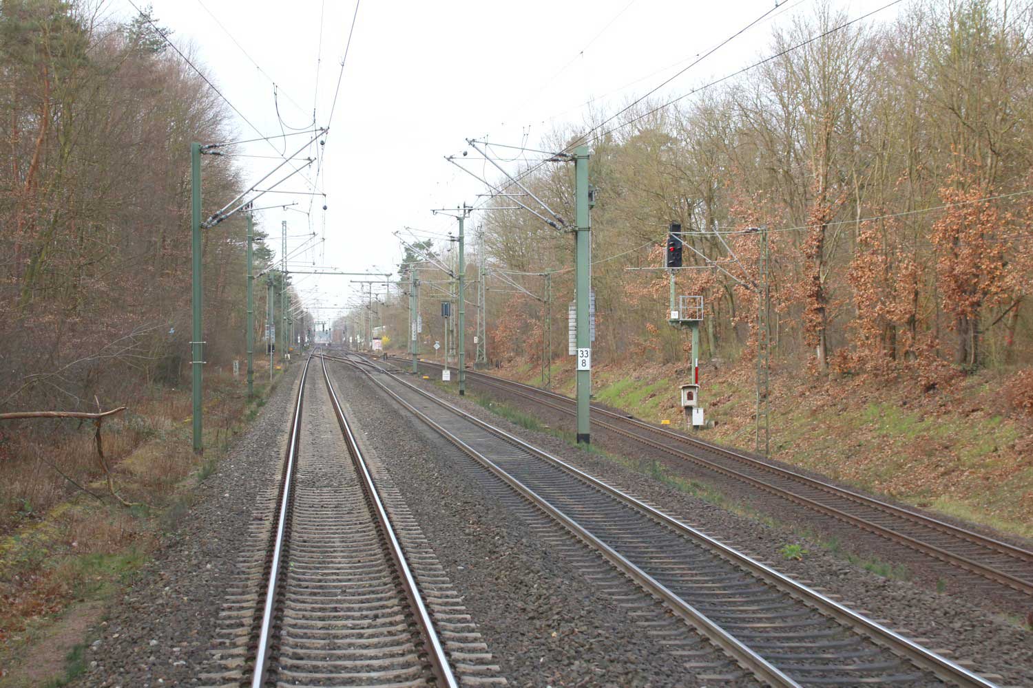 bei km 33,4 am Abzw Forsthaus - Blick Richtung Frankfurt (Main) Süd