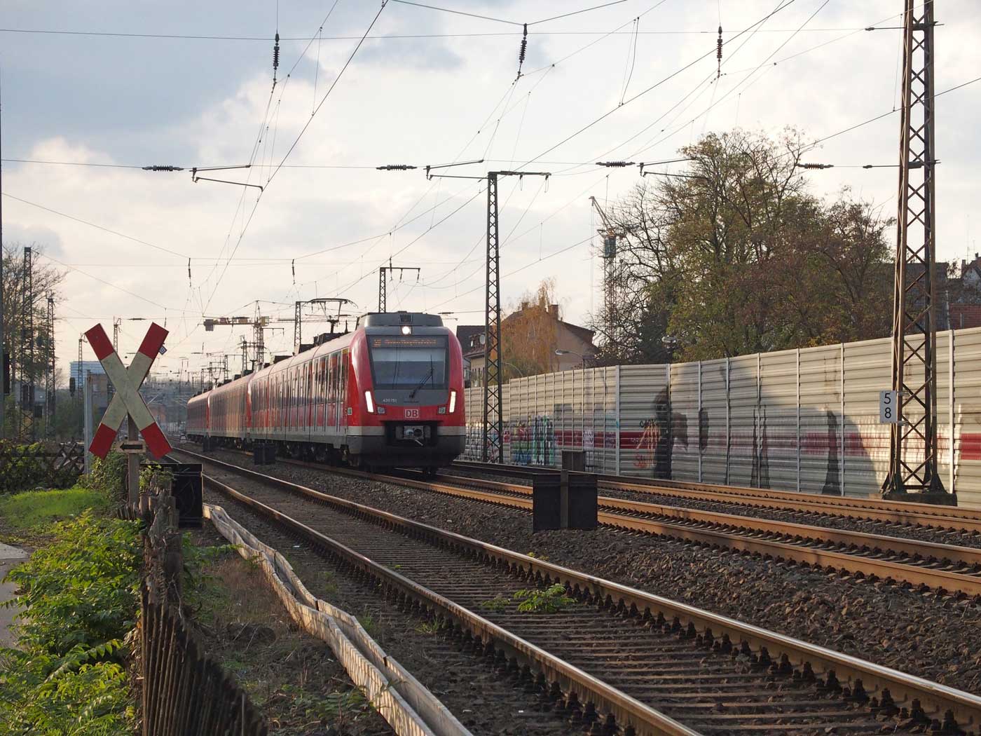 km 33,4 in Frankfurt (M)-Niederrad - Blick Richtung Frankfurt (Main) Hbf
