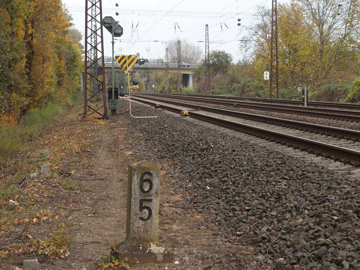 | km 49,09 der Strecke Landesgrenze Pfalz/Hessen 0,0 - Worms Hbf 3,21 - Mainz Hbf 49,09 [alte Kilometrierung] | ||