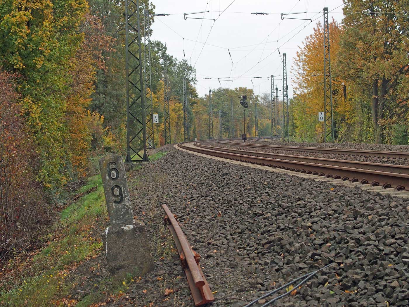 km 1,4 (Tafel und Stein rechts) gehören zur Strecke Frankfurt (Main) Hbf 0,0 - Niedernhausen (Taunus) 31,89 - Eschhofen 66,47 (3610)