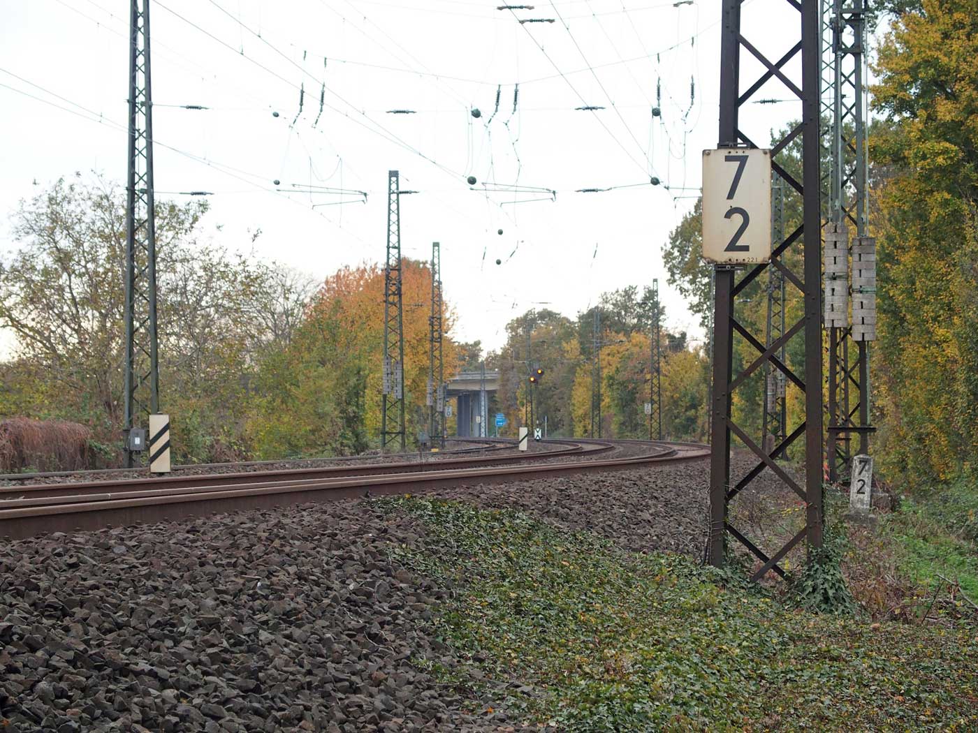 km 31,5 in Frankfurt (M)-Sportfeld - Blick Richtung Frankfurt (Main) Hbf