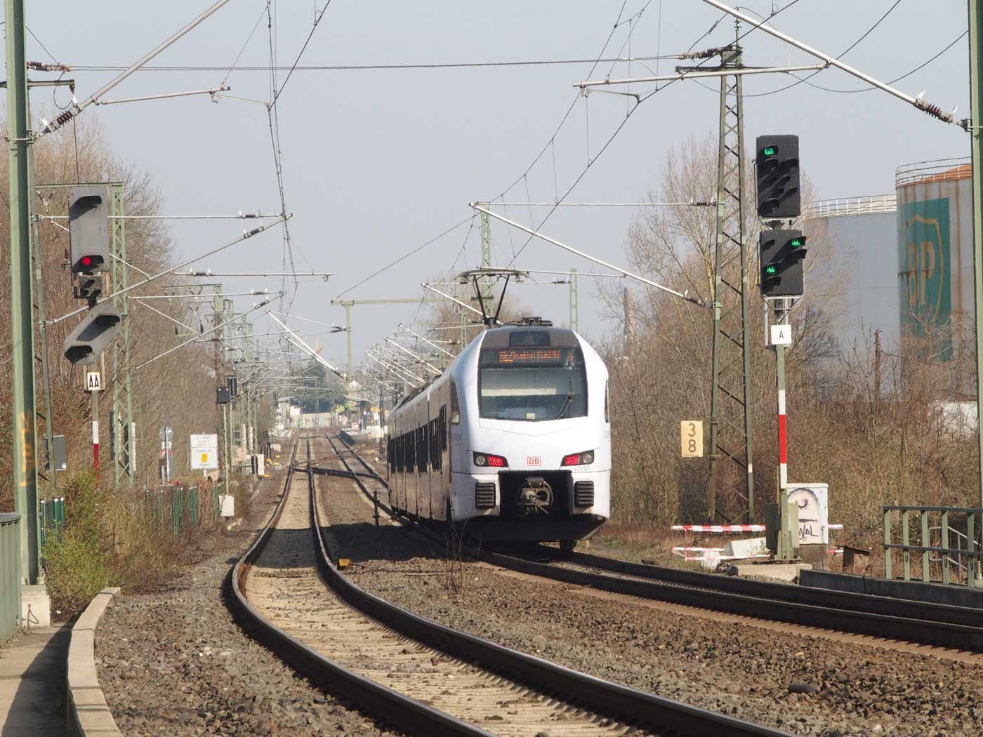 km 3,6 (versteckt hinter dem Oberleitungsmast) gehört zur Strecke