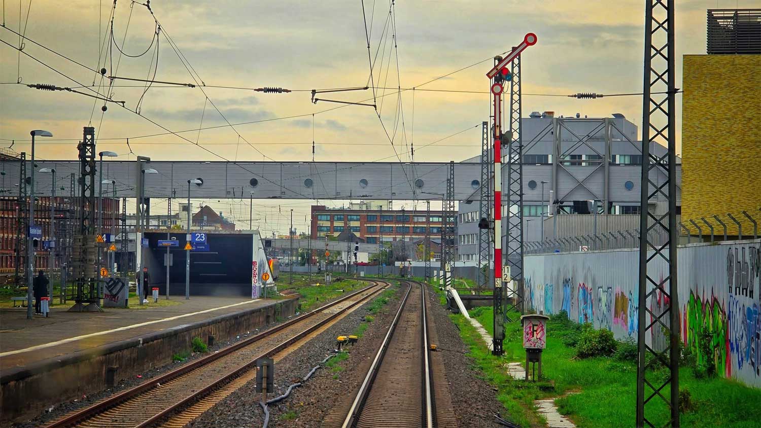 Im Hintergrund das Nordwestportal des Tunnels Mainz Hbf