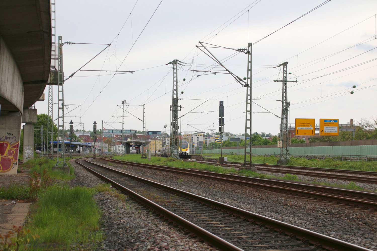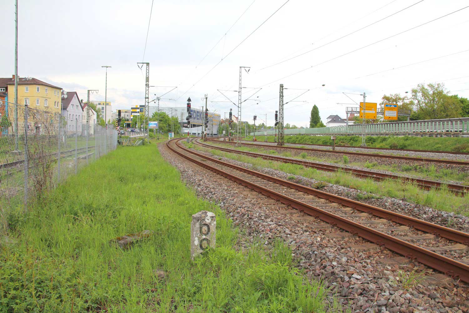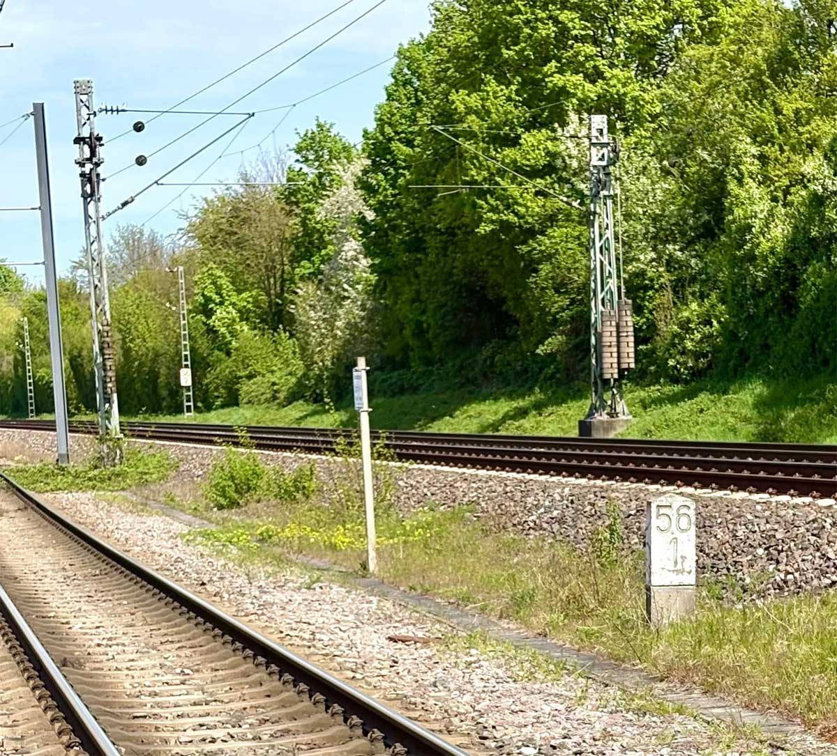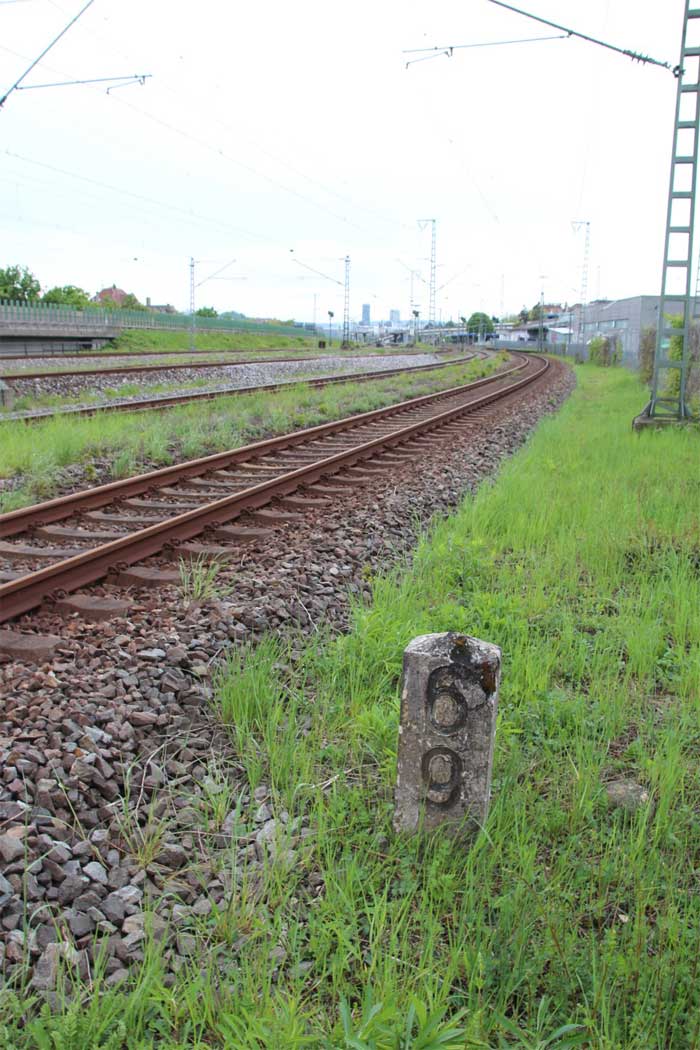 km 63,2 (Stein und Tafel) in Bad Friedrichshall Hbf - Blick Richtung Stuttgart