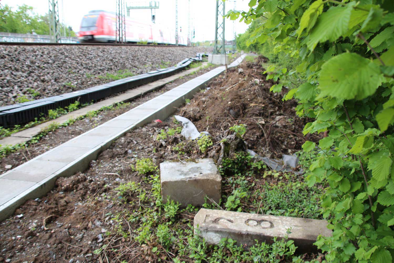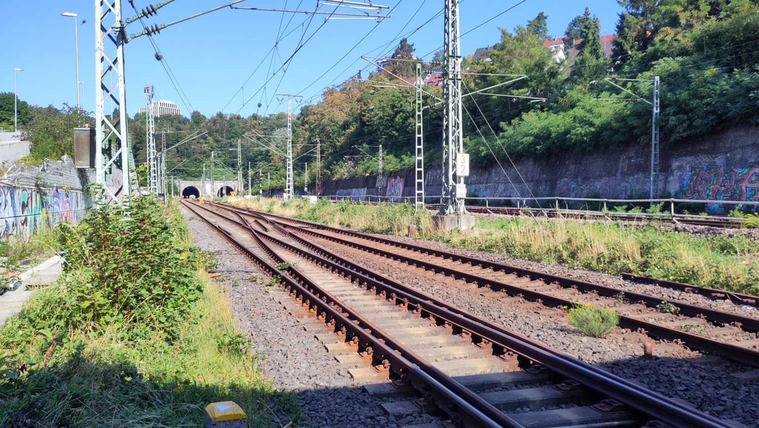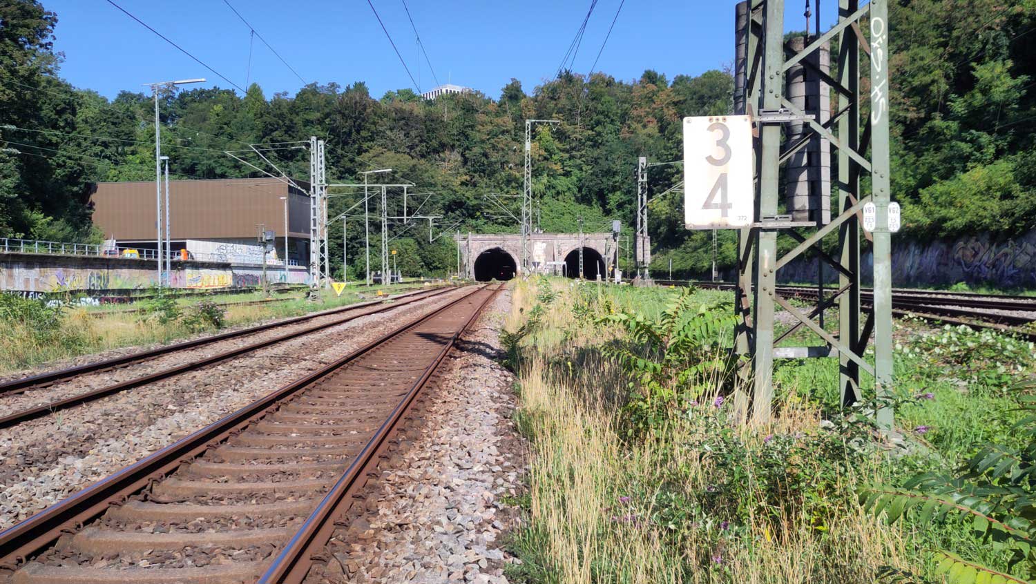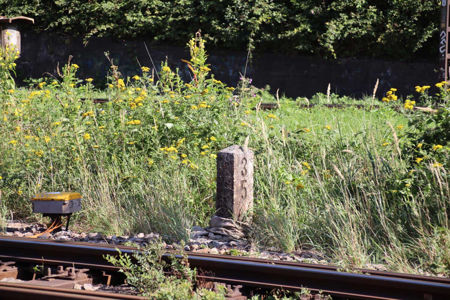 km 63,2 (Stein und Tafel) in Bad Friedrichshall Hbf - Blick Richtung Stuttgart