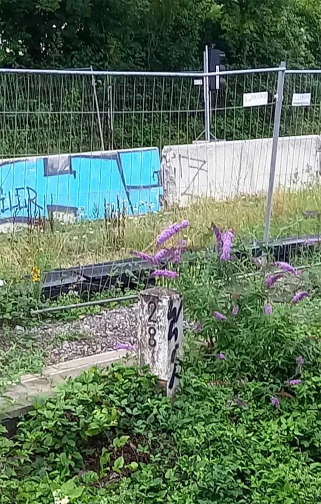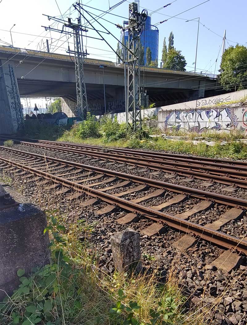 km 39,80 der Strecke Marbach (Neckar) 0,0 - Heilbronn Süd 34,25 - Abzw Pfühl 37,05 - (Heilbronn Hbf 39,80) Spurweite 750 mm, teilweise Dreischienen-Gleis