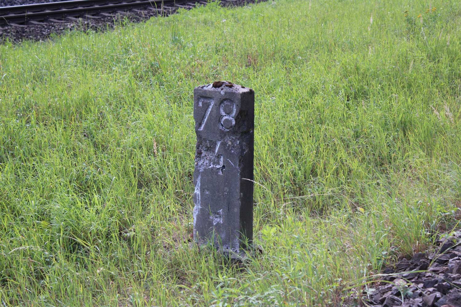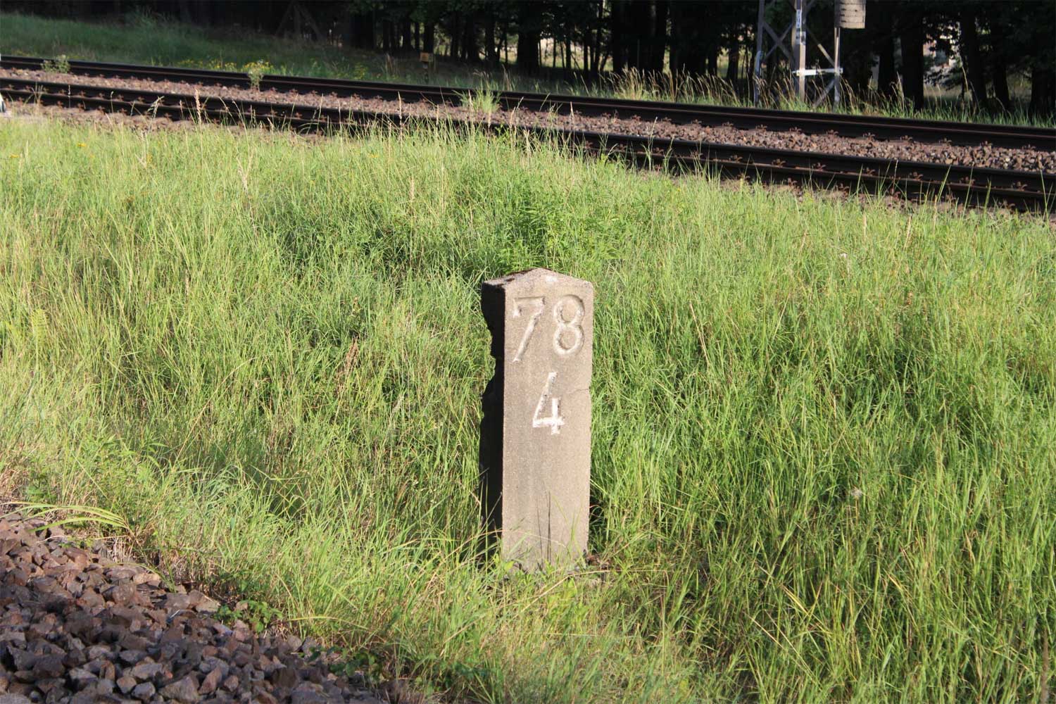km 78,4 (Stein und Tafel) in Wiesenburg (Mark) - Blick Richtung Berlin