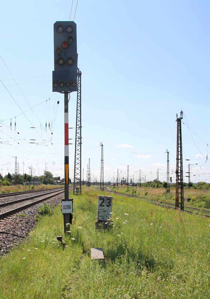 km 161,65 der Strecke Berlin Anhalter Bf -0,07 - Jüterbog 62,82 - Bitterfeld 131,64 - Halle (Saale) Hbf 161,65