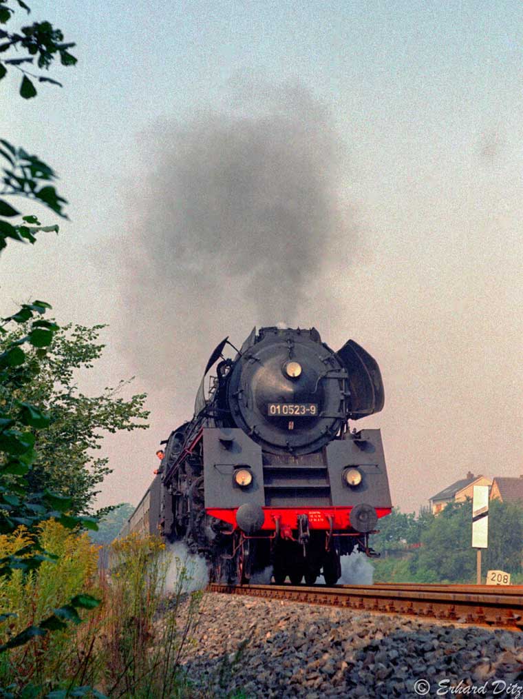 111 055 mit D1453 von Düsseldorf nach Karl-Marx-Stadt am 07.05.1981