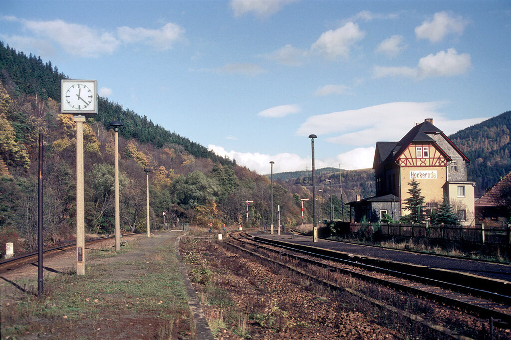 Hockeroda   0,00 km 152,08 der Strecke (Leipzig Hbf 0,0) - Leipzig-Leutzsch 6,69 - Zeitz 44,61 - Gera Hbf 72,81 - Saalfeld (Saale) 140,01 - Probstzella 164,99 - Landesgrenze Thüringen/Bayern 166,66 = 52,91 - (Hochstadt-Marktzeuln 0,0)