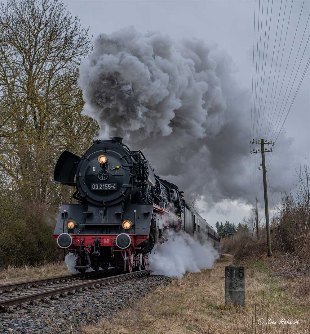 km 133,0 zwischen Könitz und Unterwellenborn - 44 0305 bei voller Kraftanstrengung