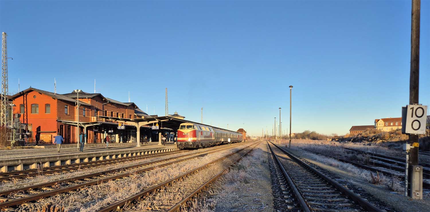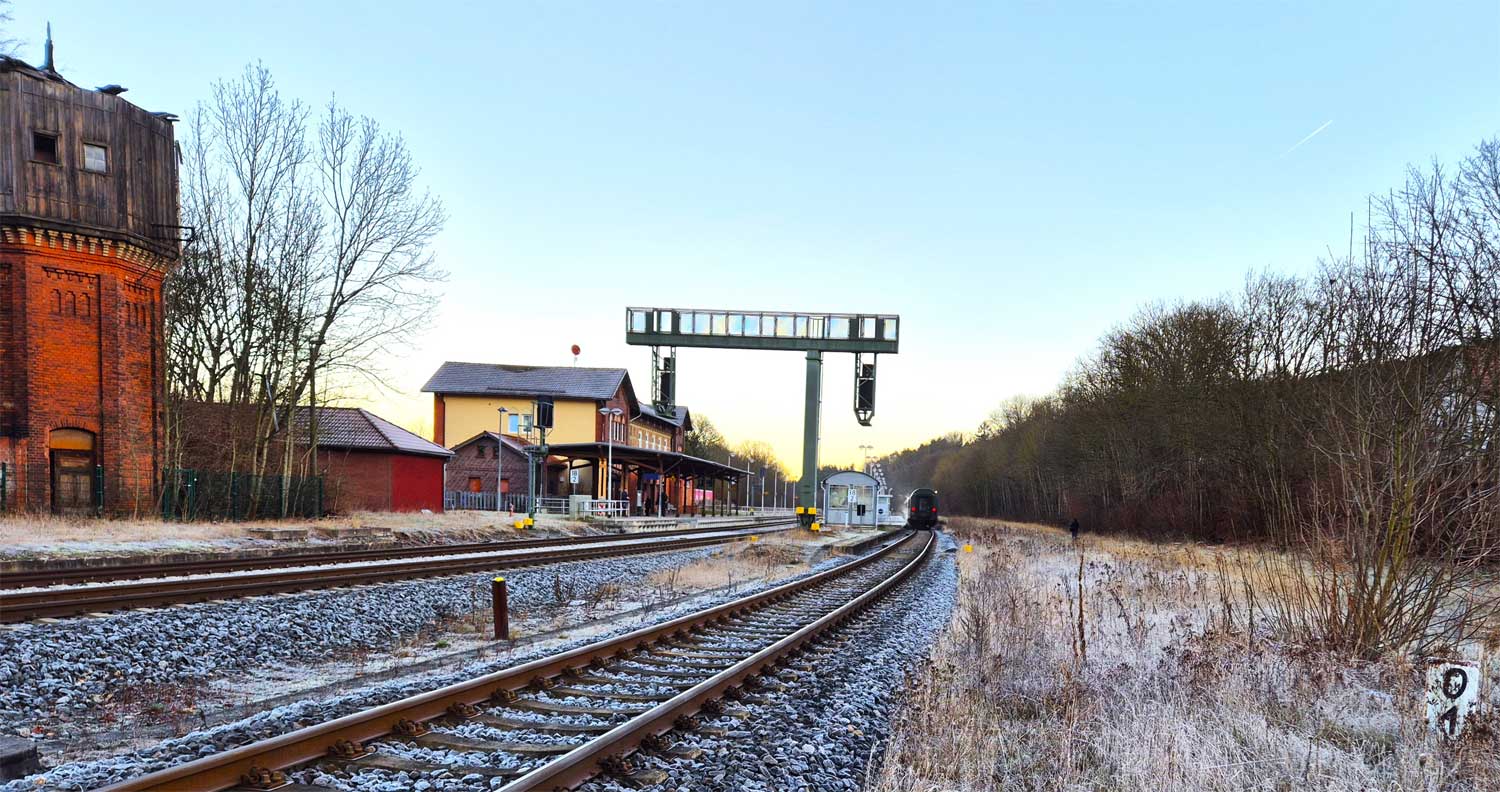 Mitte Empfangsgebäude lag somit bei km -0,213.