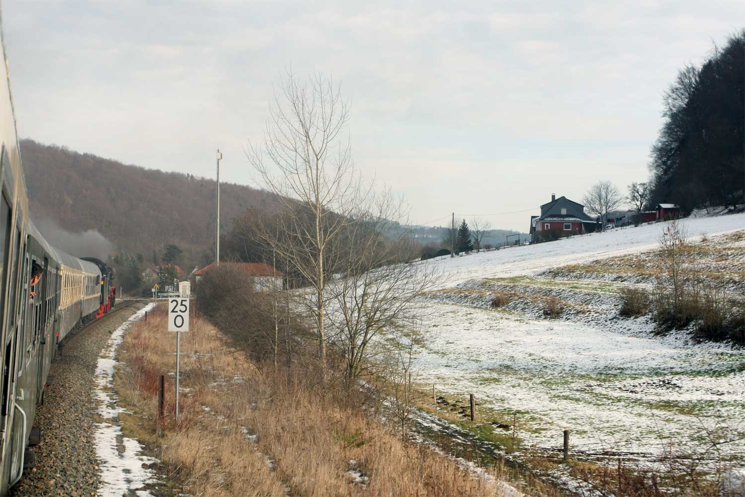 km 64,9 in Rohr - im Hintergrund das alte Bahnhofsgebäude