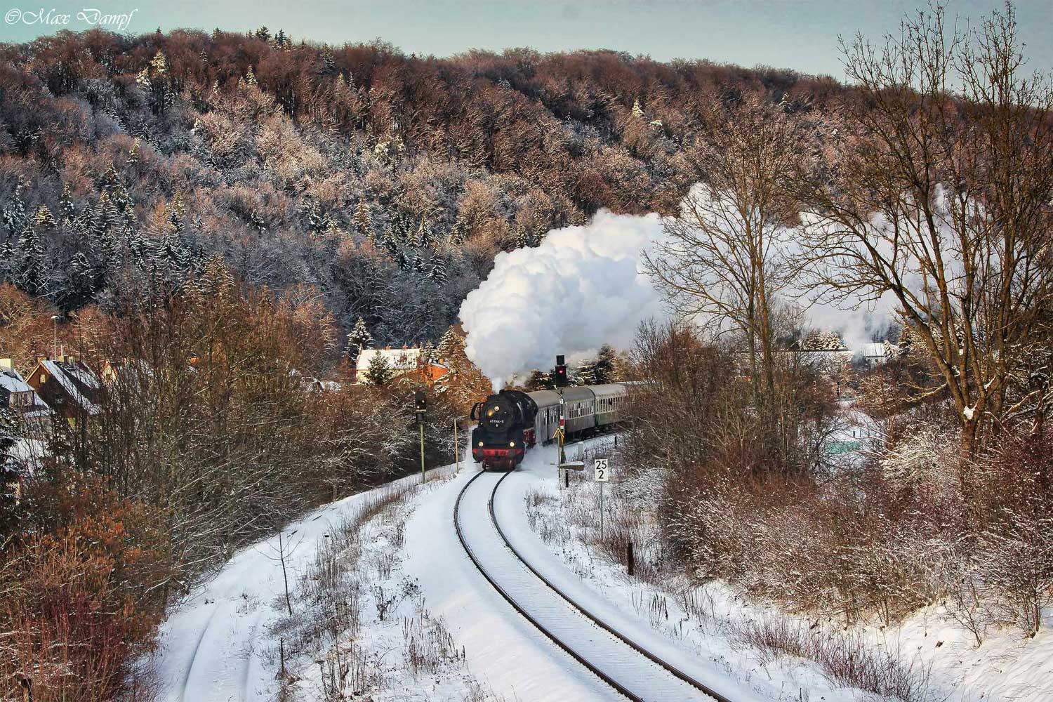 km 62,5 zwischen Dietzhausen und Rohr (Thür) - 52 8079 mit einem Sonderzug aus Ri Meiningen