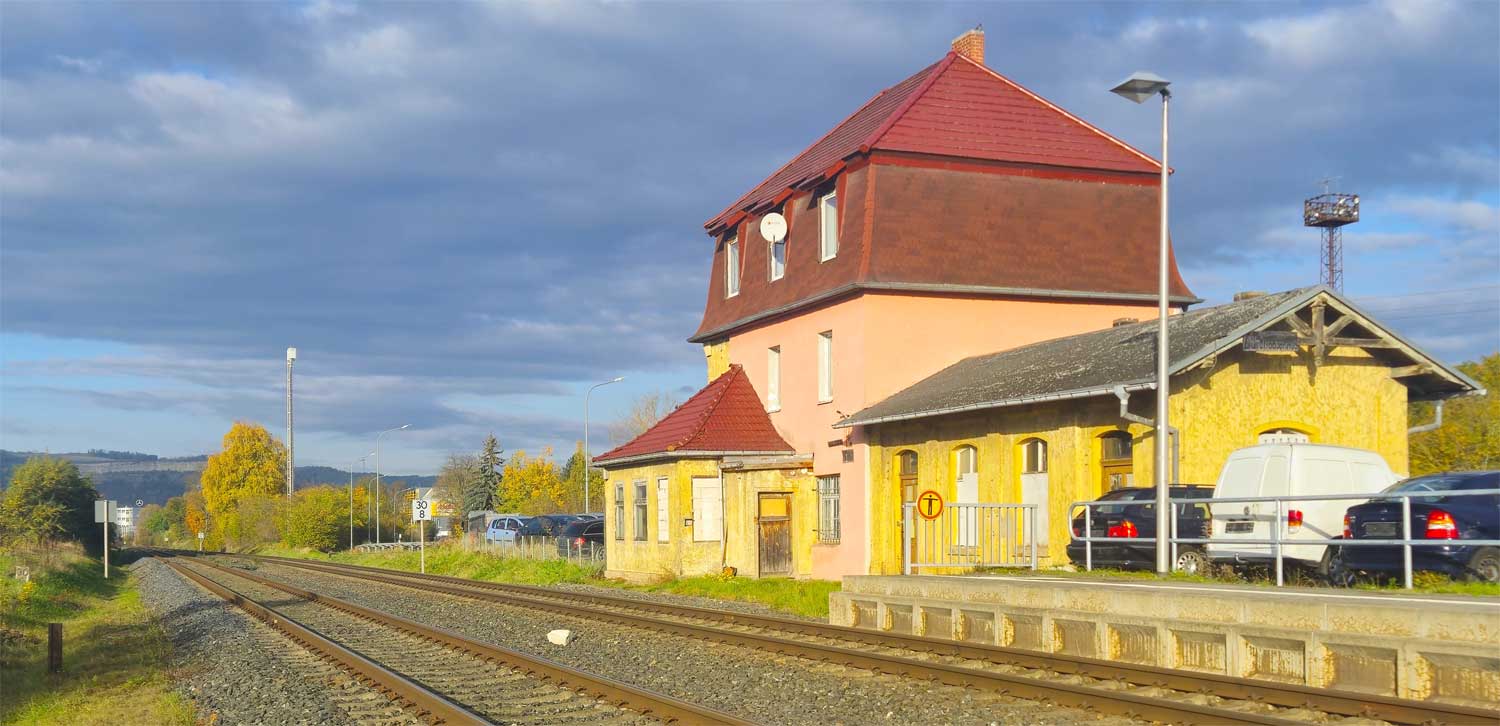 (Hochstadt-Marktzeuln 0,0) km 34,68 der Strecke Gößnitz -0,374 - Gera Hbf 34,68 (GGa) [nach 1945 verkürzt bis Gera Süd] |