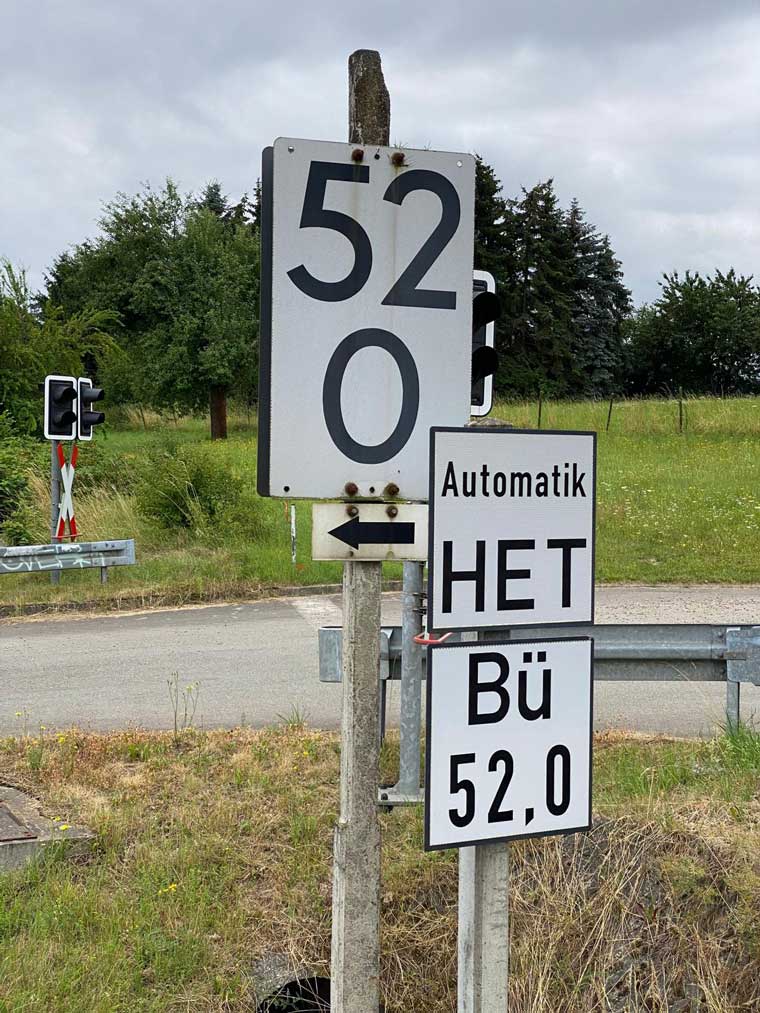 km 86,5 (Stein rechts) und km 86,6 (Tafel) gehören zur Strecke