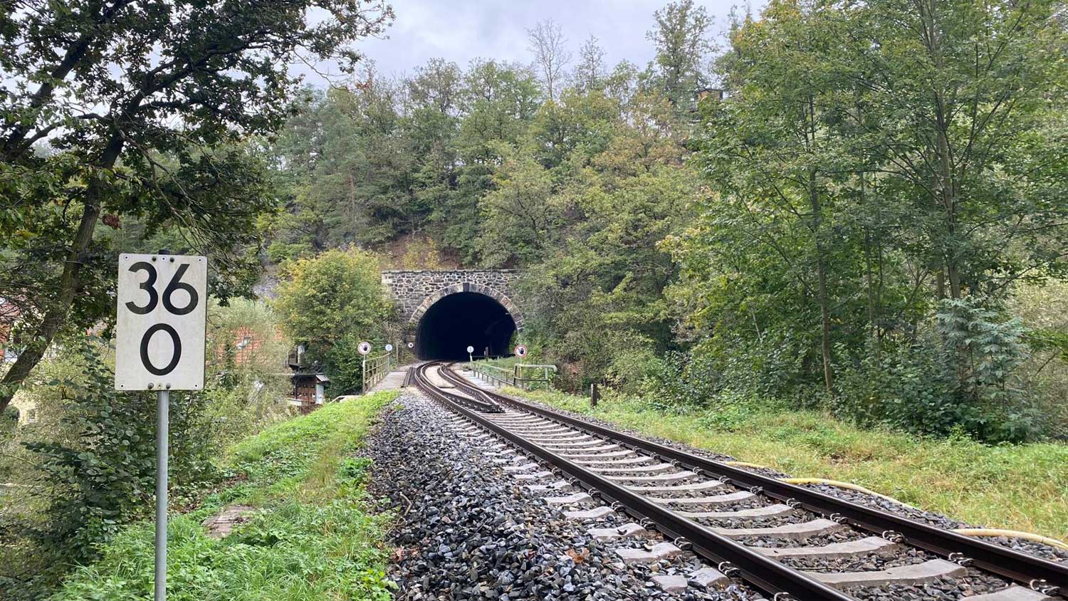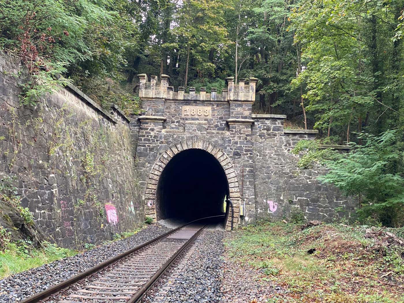 Kurz vor dem ehemaligen Ostportal des Tunnels Schüptitz