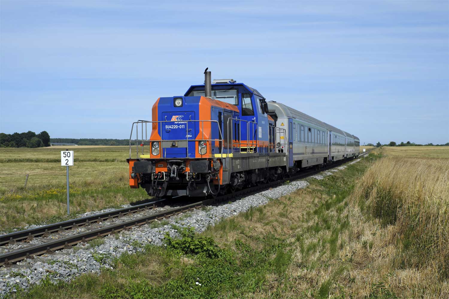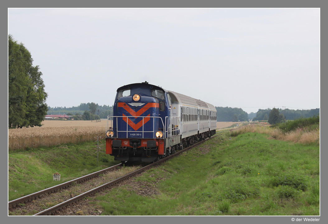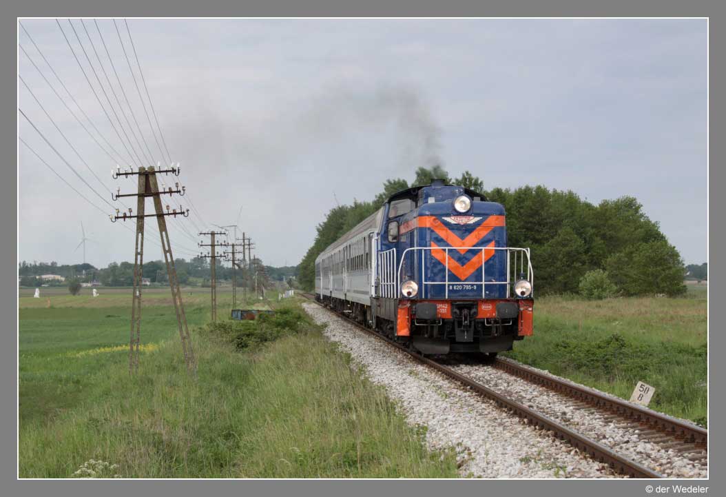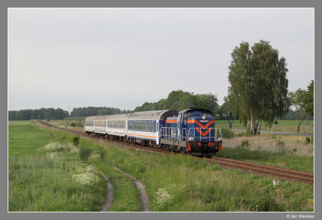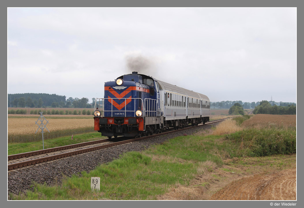 km 89,7 zwischen Gryfice [Greifenberg (Pom)] und Baszewice (Batzwitz) - SM42-368 mit TLK 18173 POSEJDON (Białystok – Szczecin)