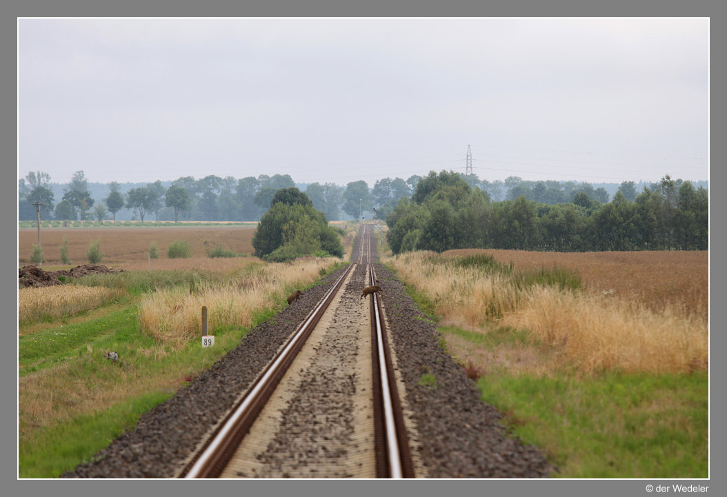 km 89,6 zwischen Gryfice [Greifenberg (Pom)] und Baszewice (Batzwitz) - Wildwechsel