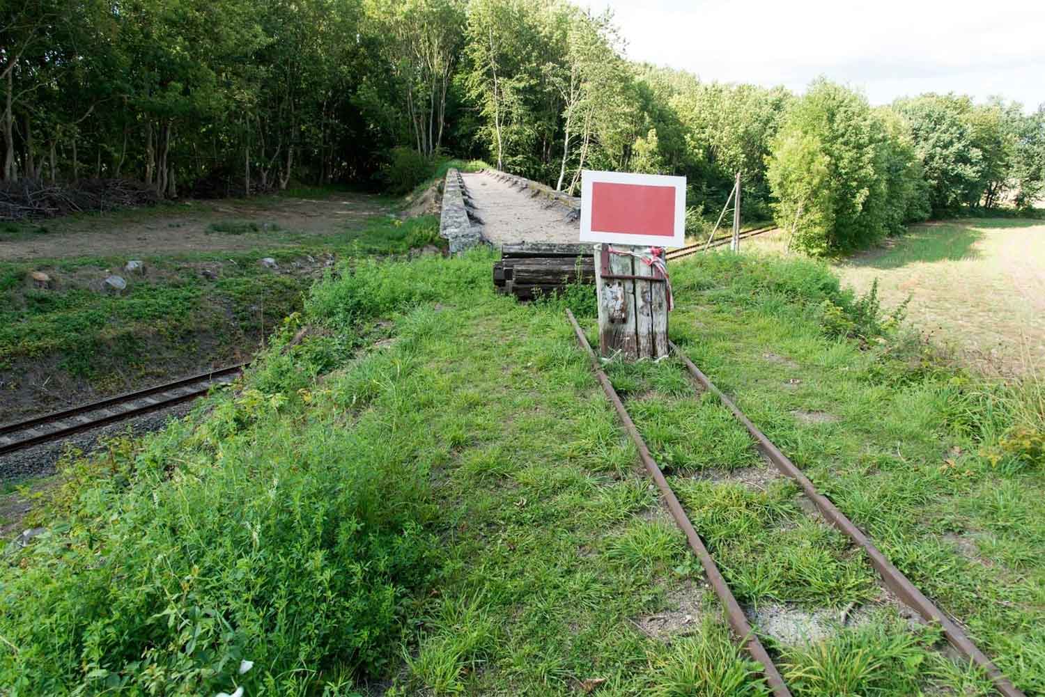 Hier überquerte einst die Strecke von Altefähr bei Putbus das Regelspurgleis der Strecke Bergen (Rügen) 0,0 - Lauterbach (Rügen) 12,02