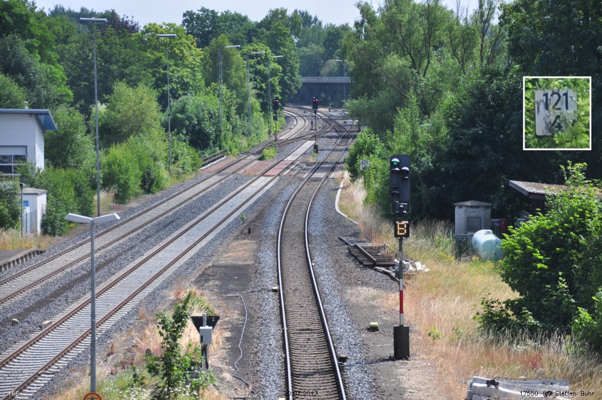 Oberkotzau Pbf | 121,62 | km 87,02 der Strecke Weiden (Oberpf) 0,0 - Marktredwitz 51,07 - Oberkotzau 87,02 |