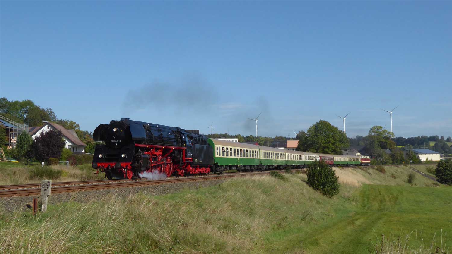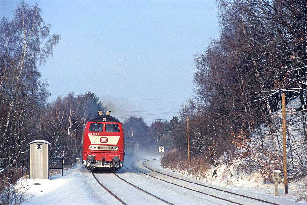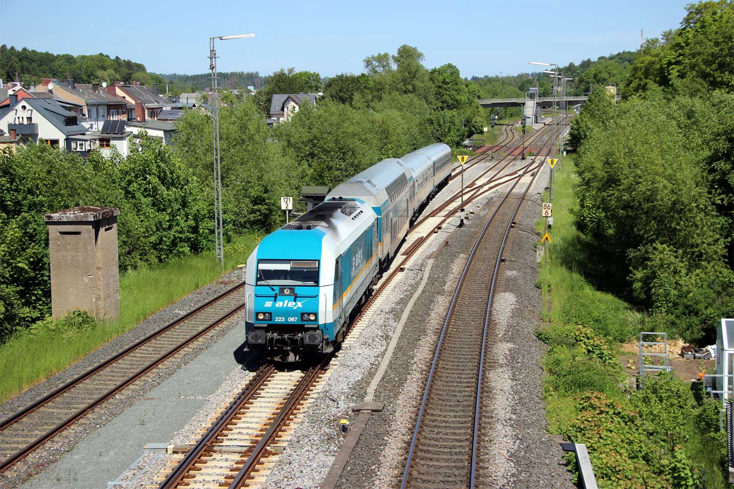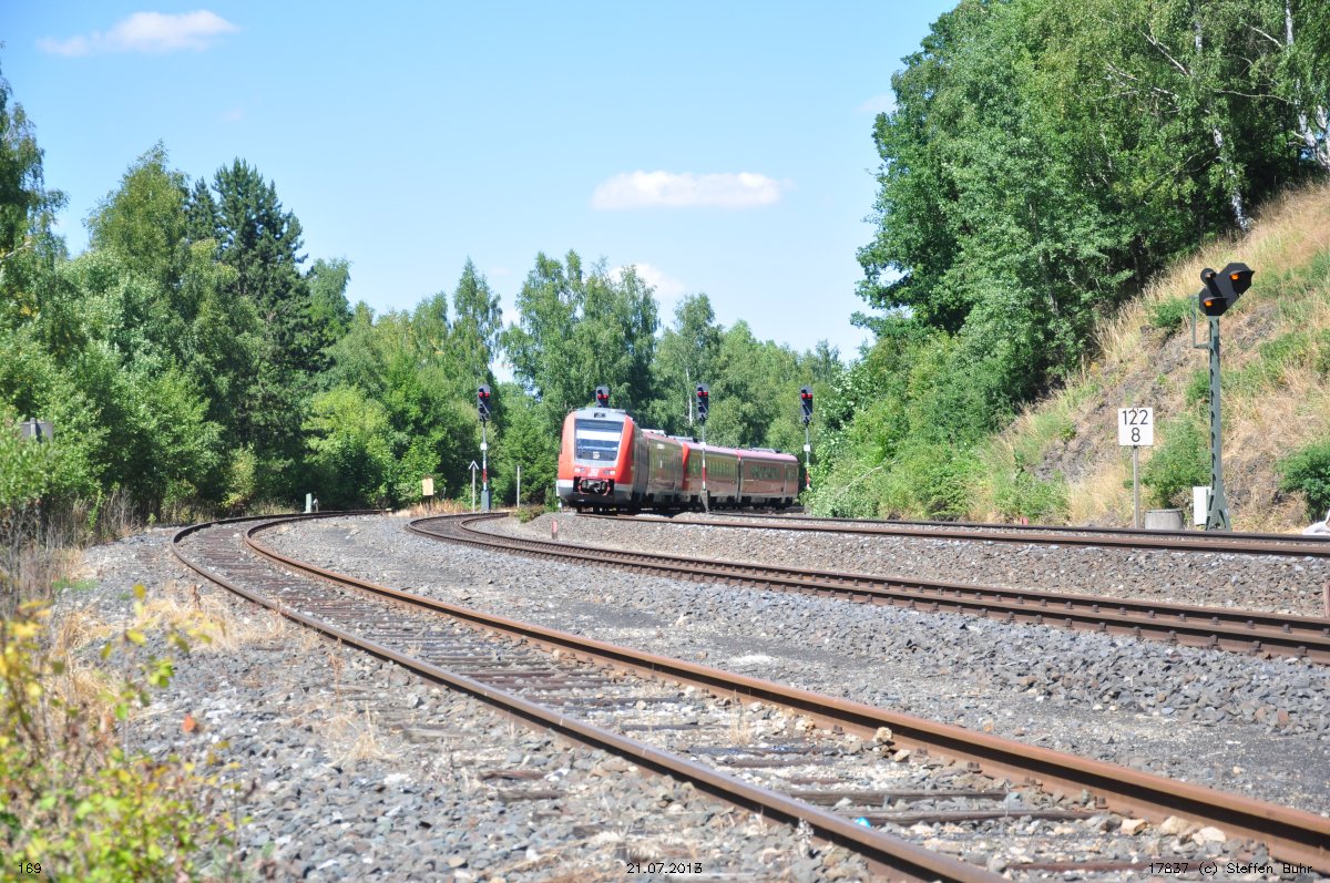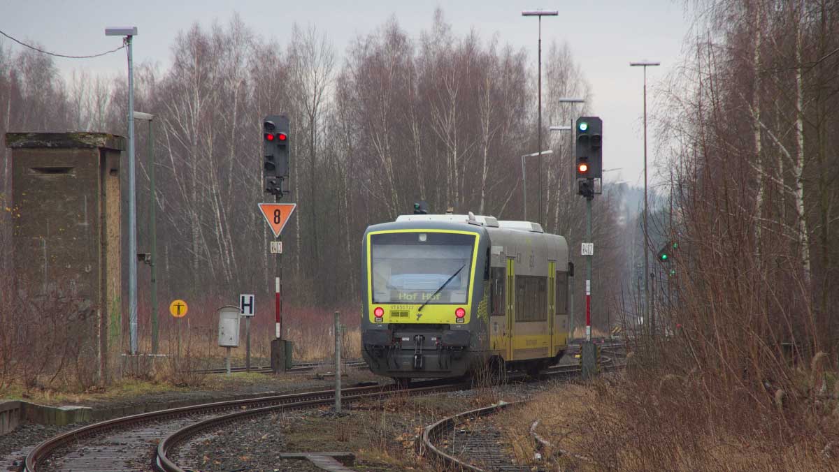 Hof Hbf | 127,23 | km 164,75 der Strecke Leipzig Bayerischer Bf 0,12 - Altenburg Hbf 38,63 - Werdau 73,81 - Reichenbach (Vogtl) 90,96 - Plauen ob Bf 116,11 - Grenze DDR/BRD 151,699 - Hof Hbf 164,75 |