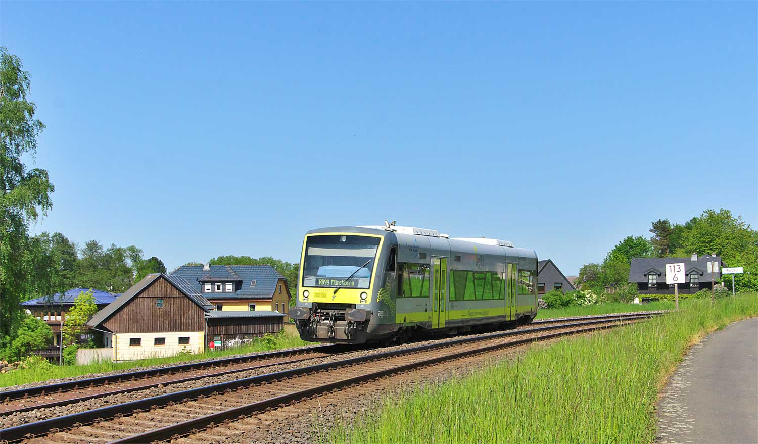 km 54,50 der Strecke Cheb (Eger) 0,0 - Aš (Asch) 27,55 - Grenze Tschechien/Deutschland 29,601 - Selb-Plößberg 34,82 - Oberkotzau 54,50 | ||