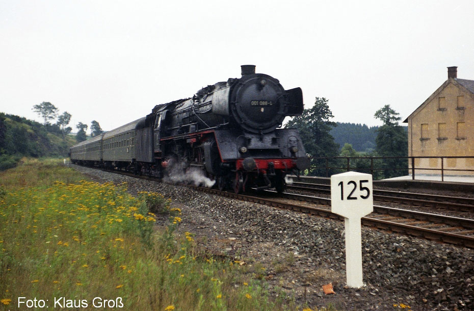 Hochstadt-Marktzeuln | 40,16 | km 0,0 der Strecke Hochstadt-Marktzeuln 0,0 - Grenze BRD/DDR 52,91 = 166,665 - [Probstzella 164,99 - Saalfeld (Saale) 140,01 - Gera Hbf 72,81 - Zeitz 44,61 - Leipzig-Leutzsch 6,69 - (Leipzig Hbf 0,0)] |