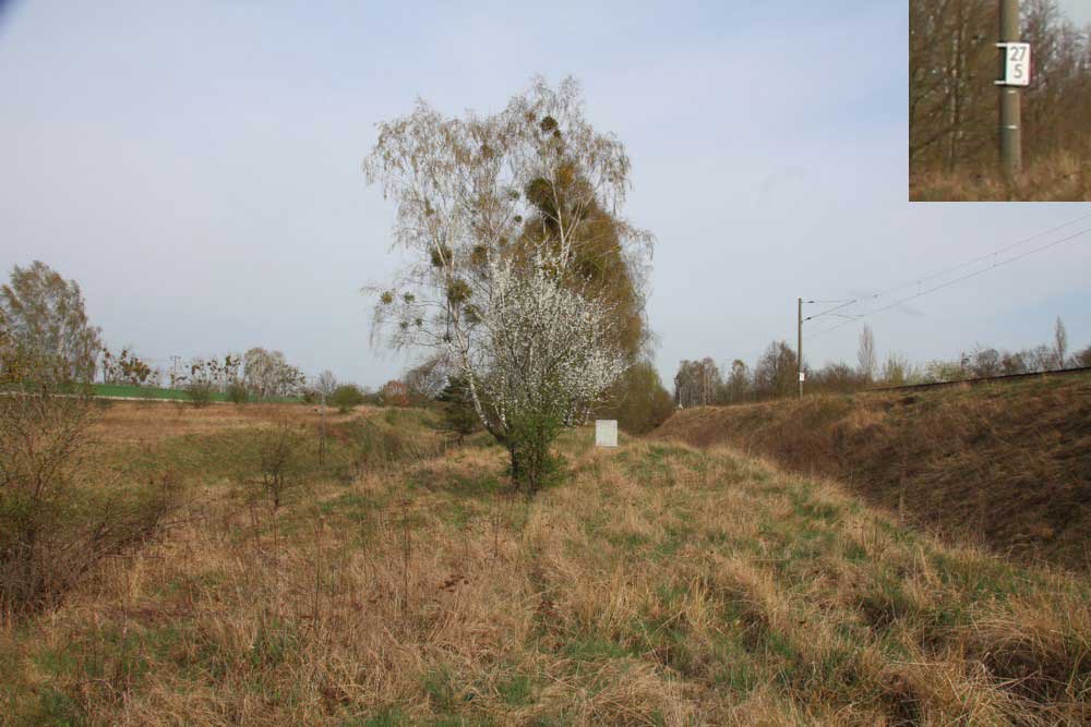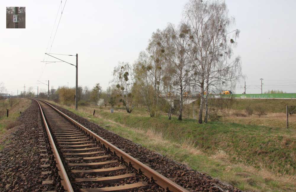 km 27,5 (oben) im Bereich Wustermark Rbf Unten km 27,5 des ehemaligen Gegenrichtungsgleises der