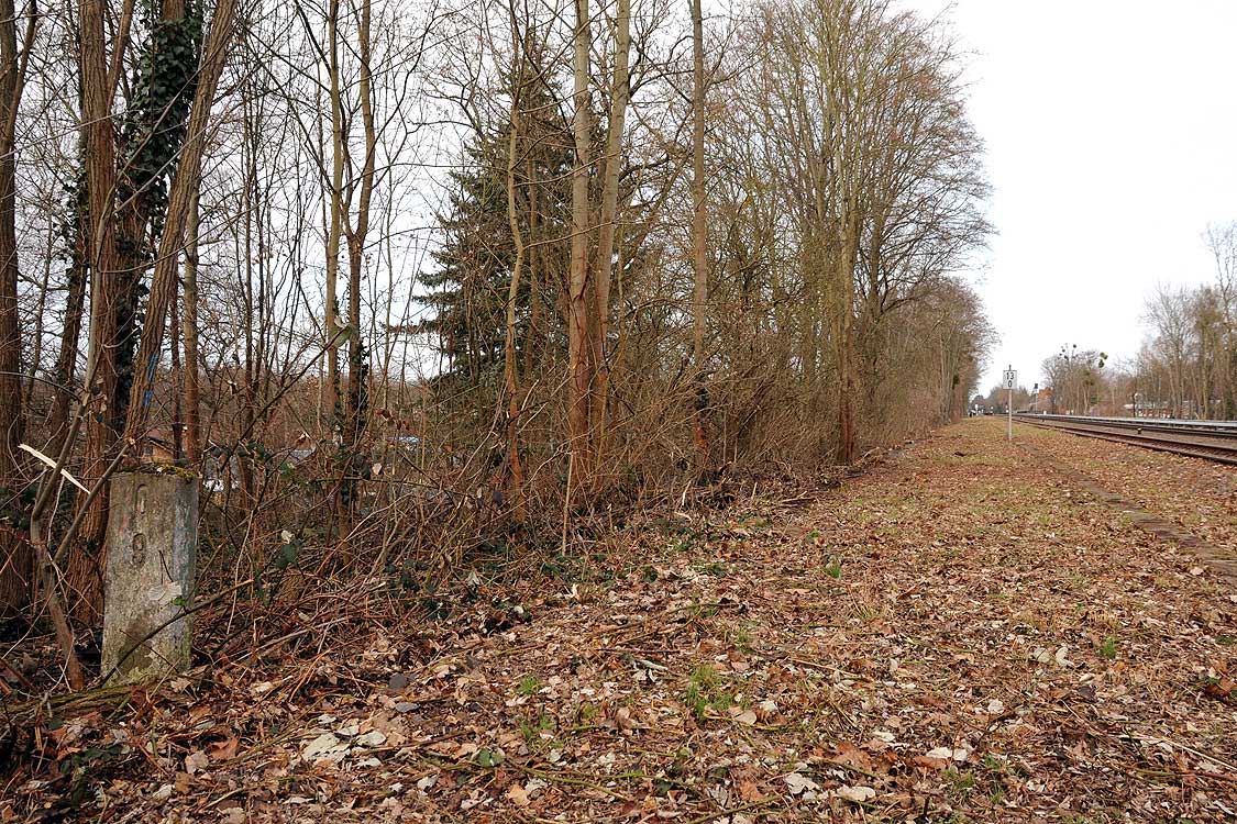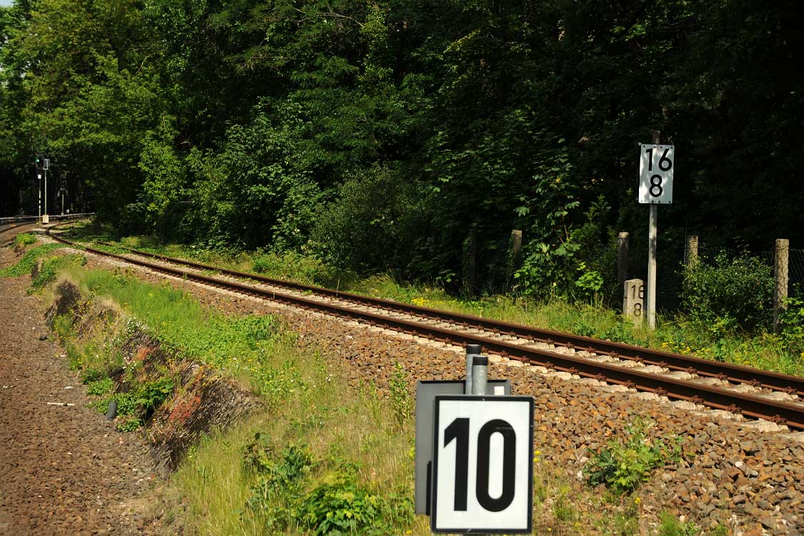 Blick Richtung Berlin-Zehlendorf km 13,0 (Tafel) und km 13,1 (Stein) gehören zur Wannseebahn