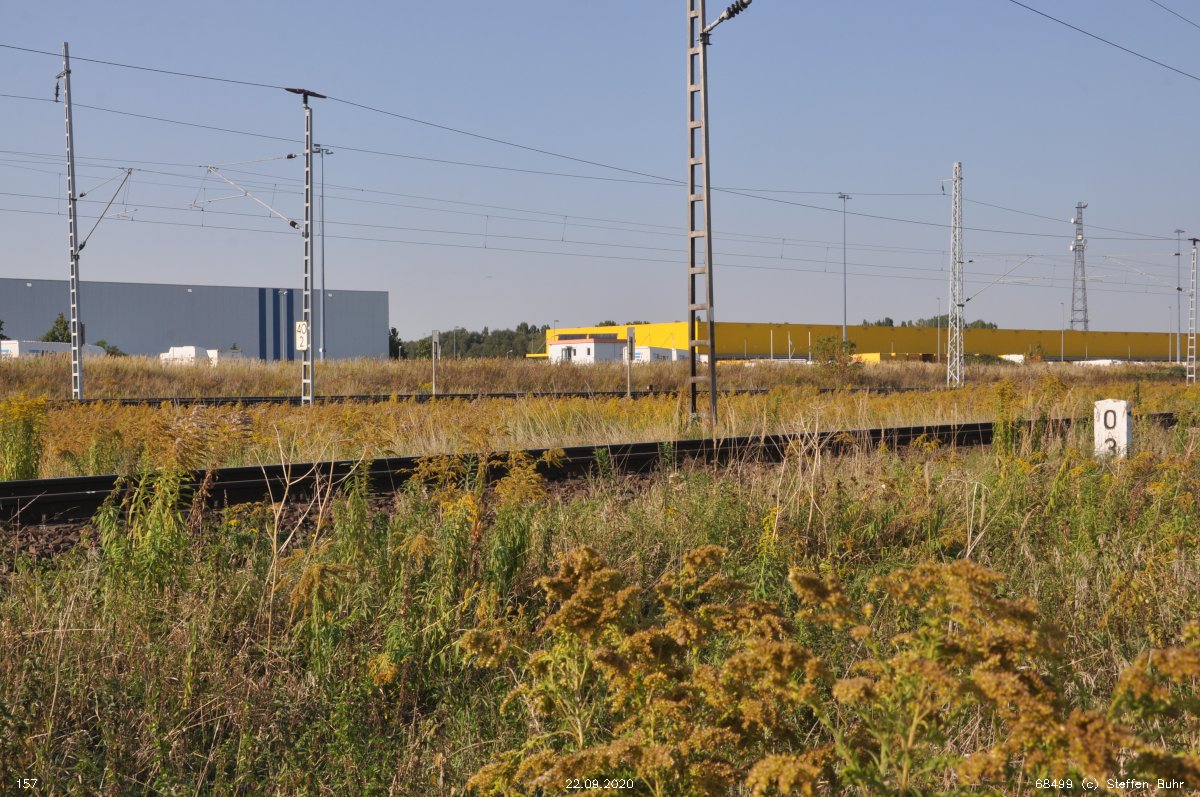 Im Hintergrund km 0,2 der Strecke Abzw Wustermark Awf, W 53, km 0,0 - Wustermark Rbf, W 388, km 3,442 (6103)