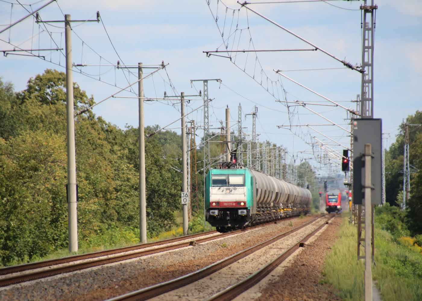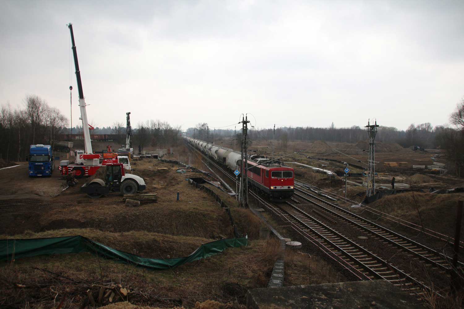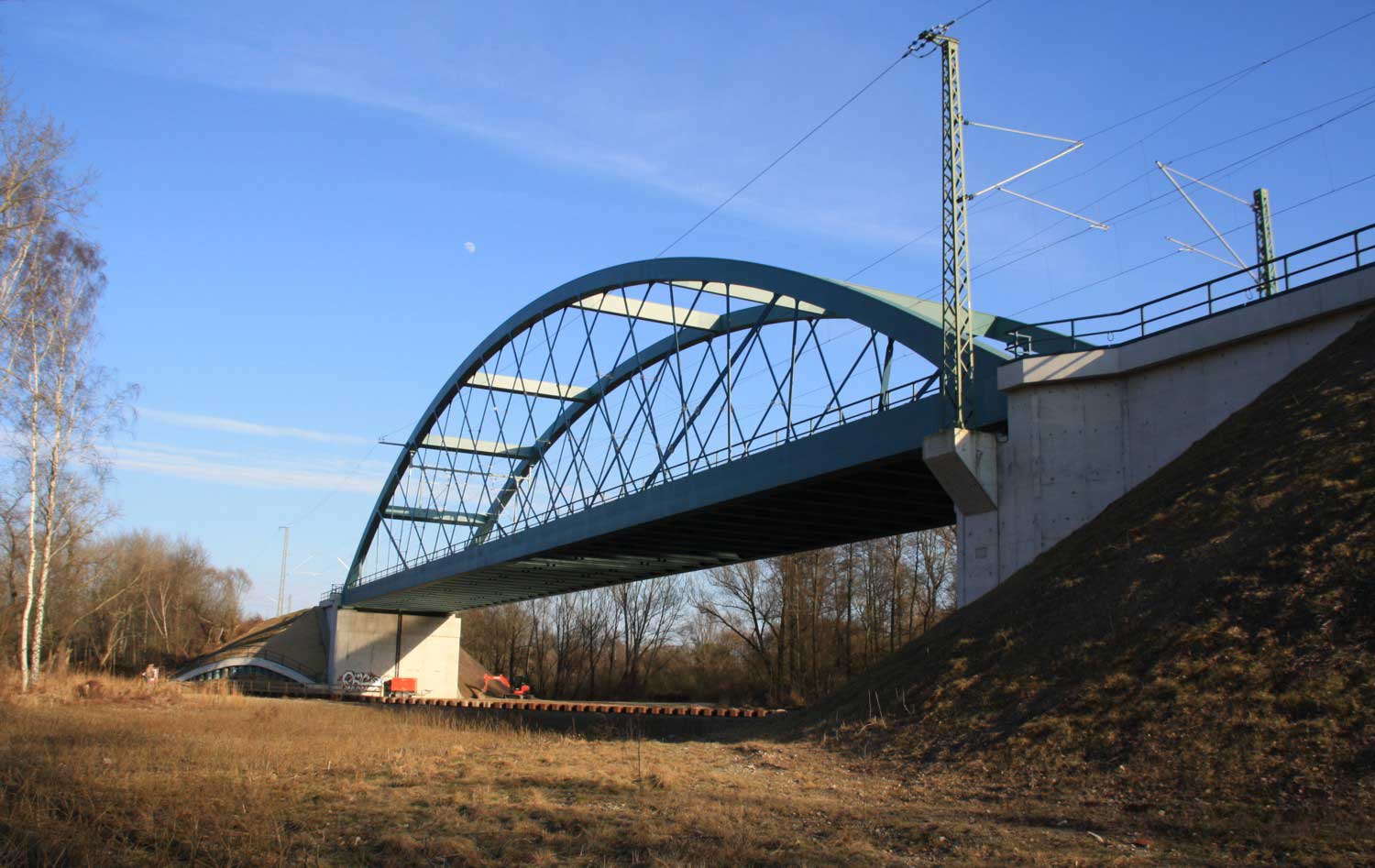 Über die Brücke im Hintergrund führen drei Gleise der Lehrter Bahn (1 Gleis Strecke 6107 und 2 Gleise Strecke 6185)
