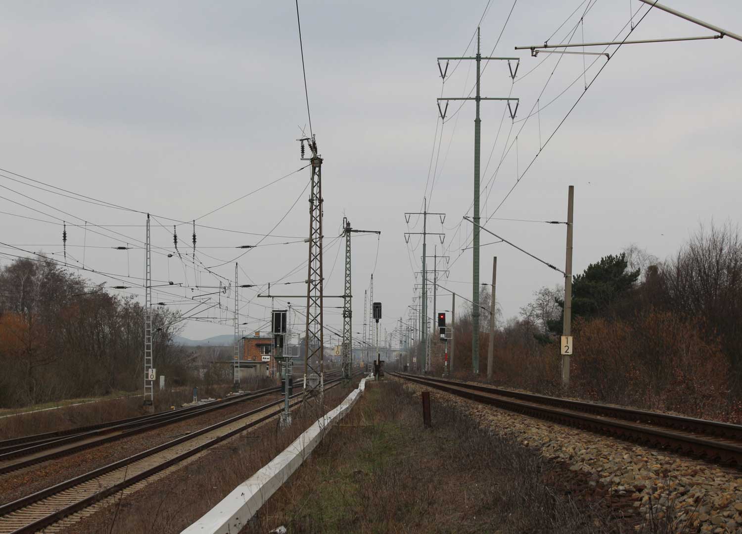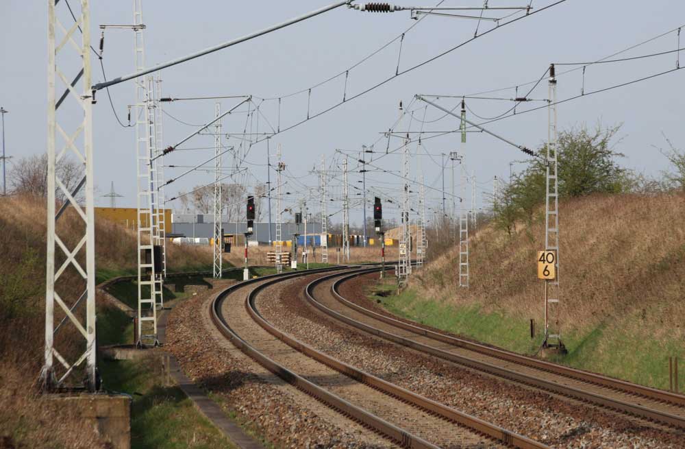 Rechts km 28,0 des bereits zu DR-Zeiten vorbereiteten Ausbaues (4-gleisig) der Lehrter Bahn