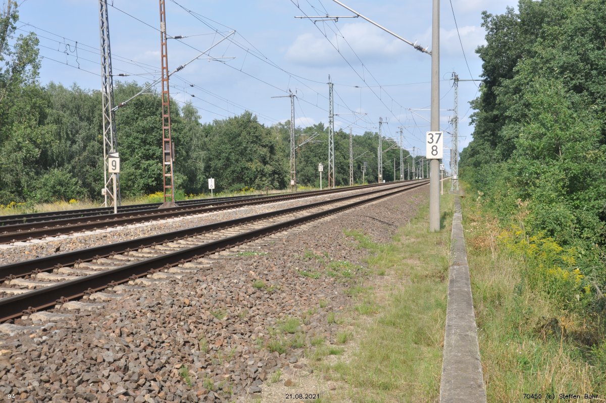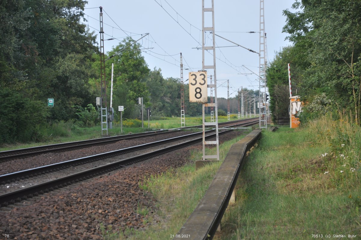 Rechts km 78,0 der Strecke Jüterbog 0,0 - Beelitz Stadt 40,01 - Wildpark 58,78 - Wustermark 81,10 - Nauen 90,06