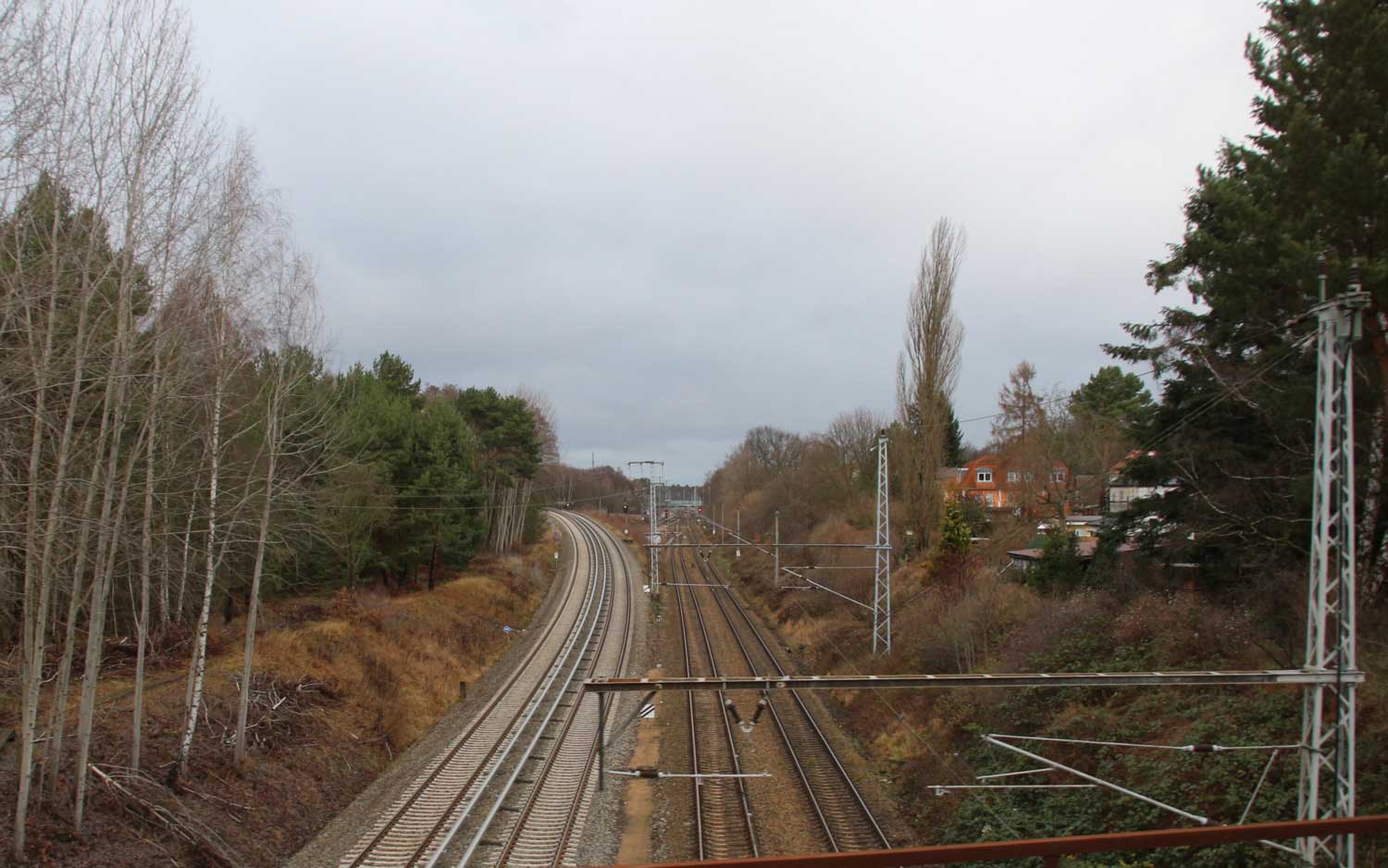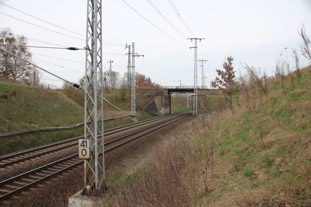 Links km 28,0 des bereits zu DR-Zeiten vorbereiteten Ausbaues (4-gleisig) der Lehrter Bahn