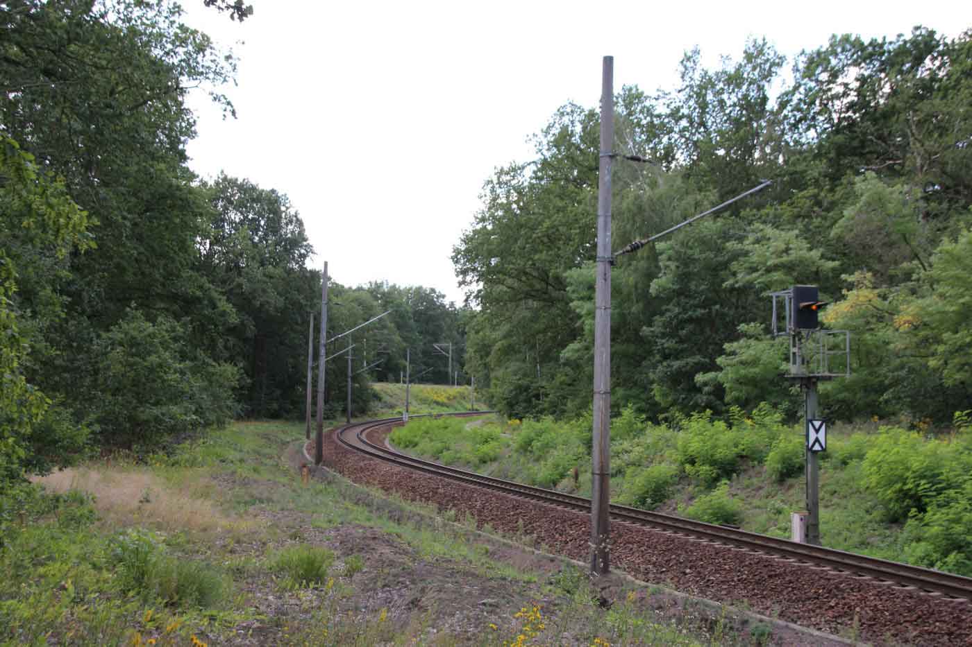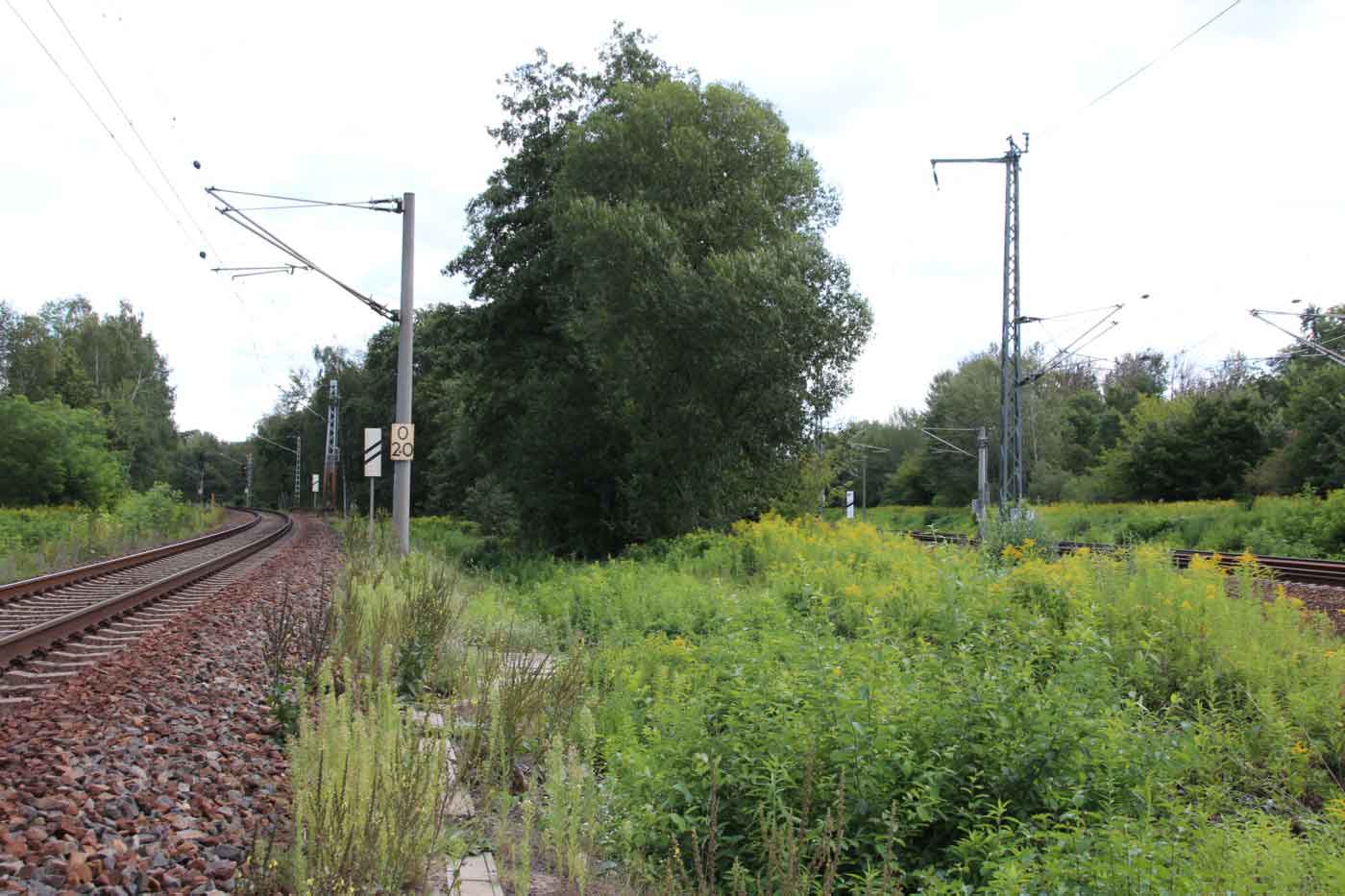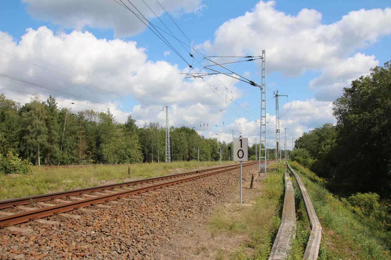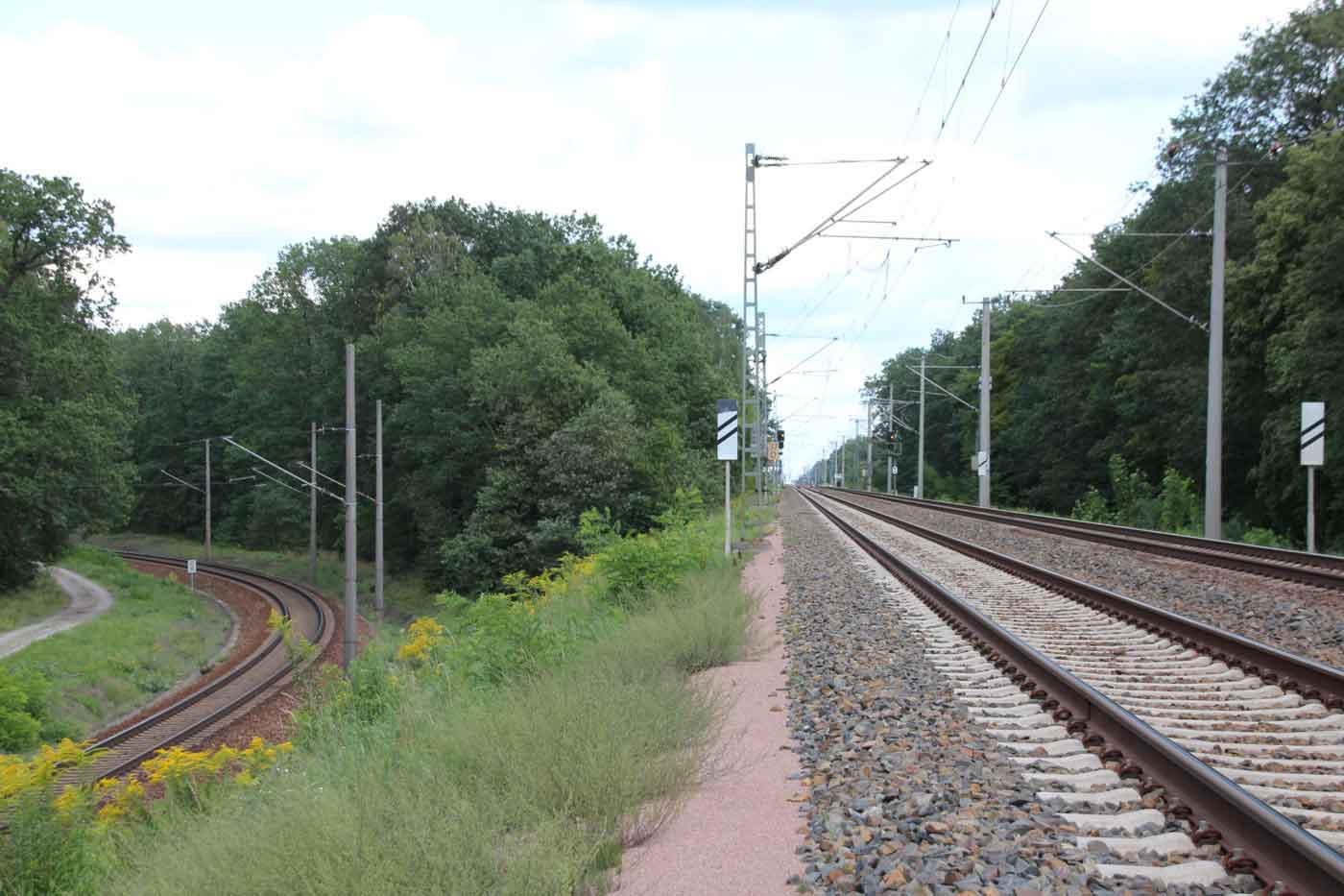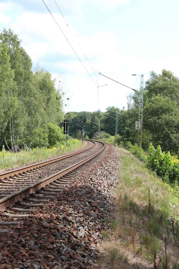 - Blick entgegen der Richtung der Kilometrierung Rechts oben der Berliner Aussenring (BAR) Foto: Julius Pintsch, August 2019